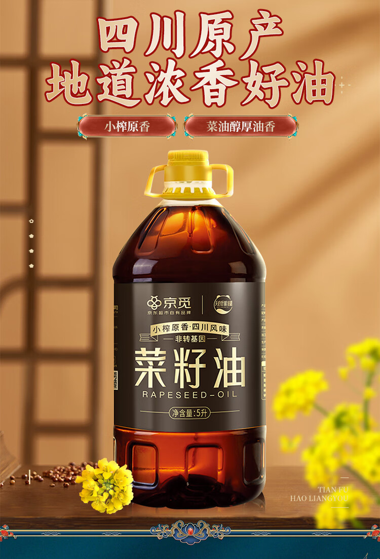 京觅&天府好粮油蜀【保真菜籽油】【采销甄选】小榨原香菜籽油5L