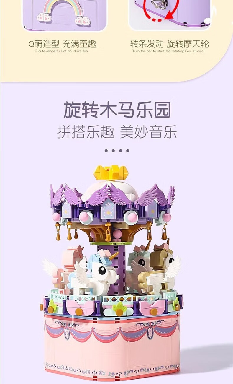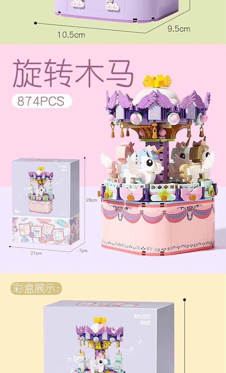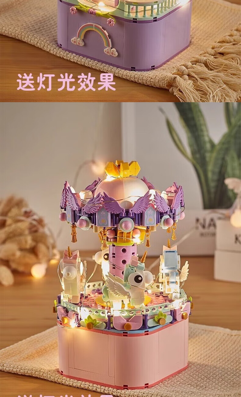 若来(Rolife)旋转木马八音盒diy手工拼装积木模型玩具音乐盒儿童圣诞礼物女孩