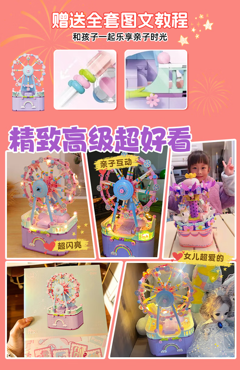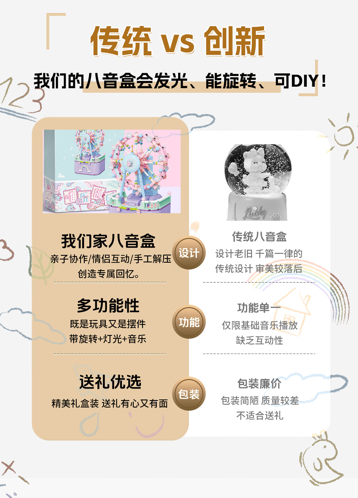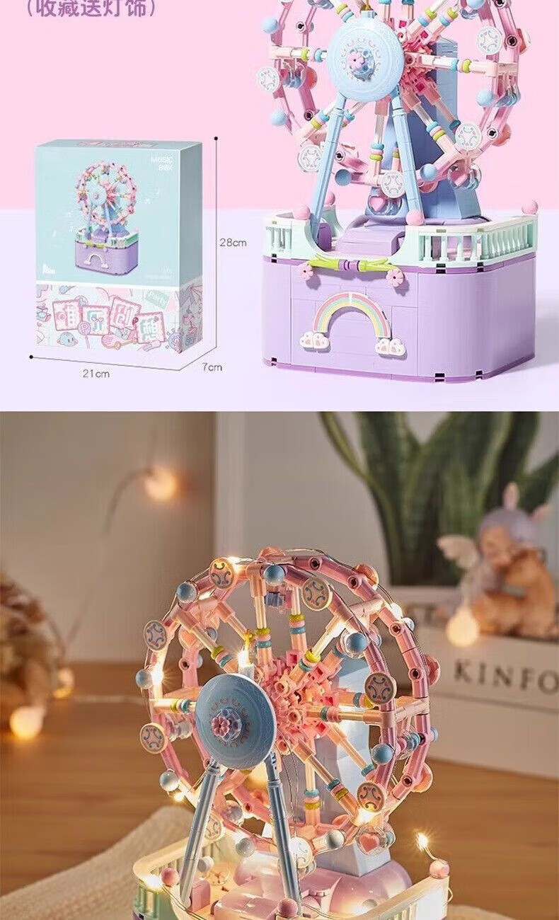 贝初众女孩生日礼物7-14岁儿童玩具音乐盒八音盒6-10岁8-12岁最圣诞节火 【摩天轮音乐灯光款】精美礼盒 六七岁送学生女儿喜欢的小玩意