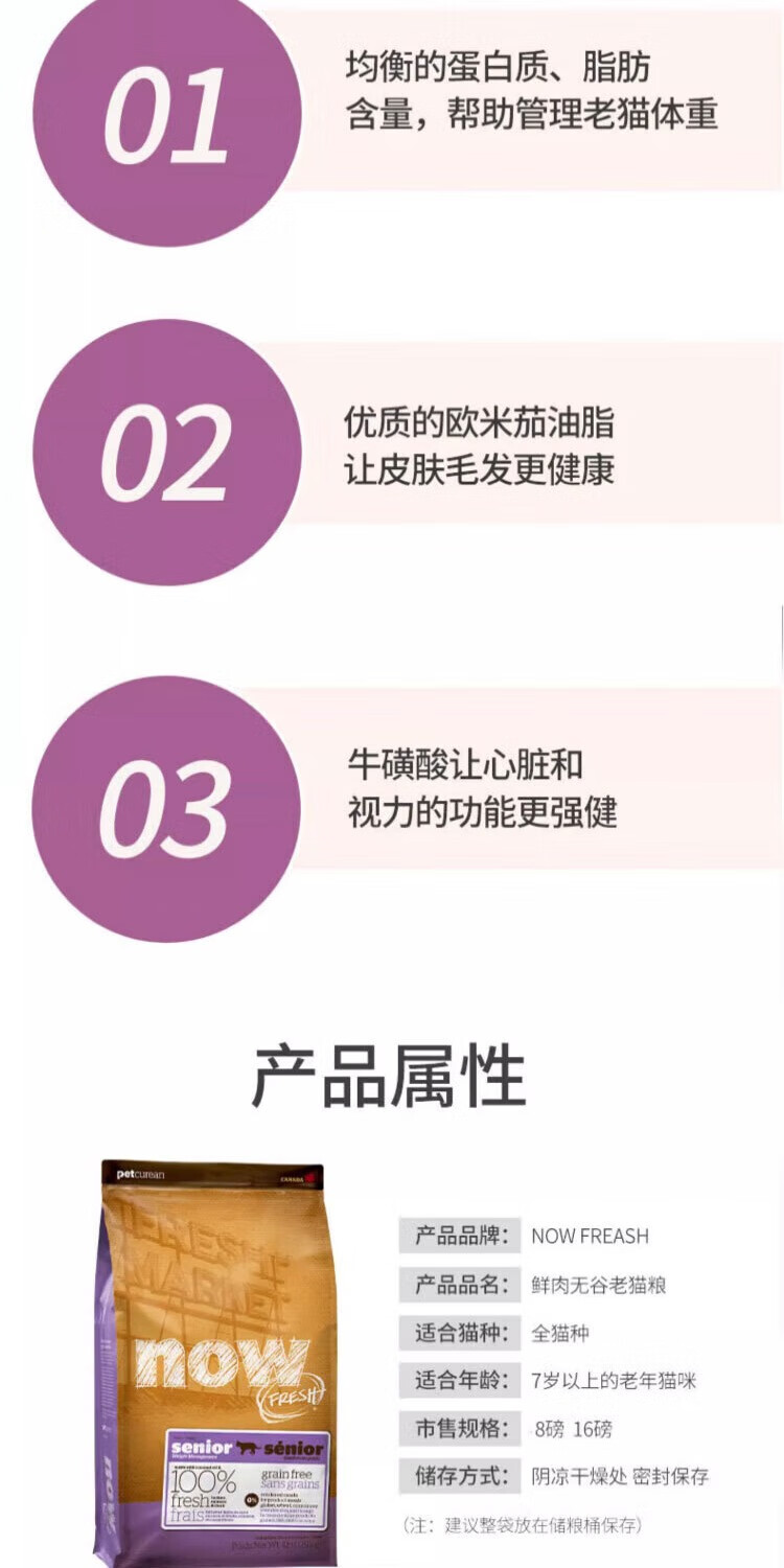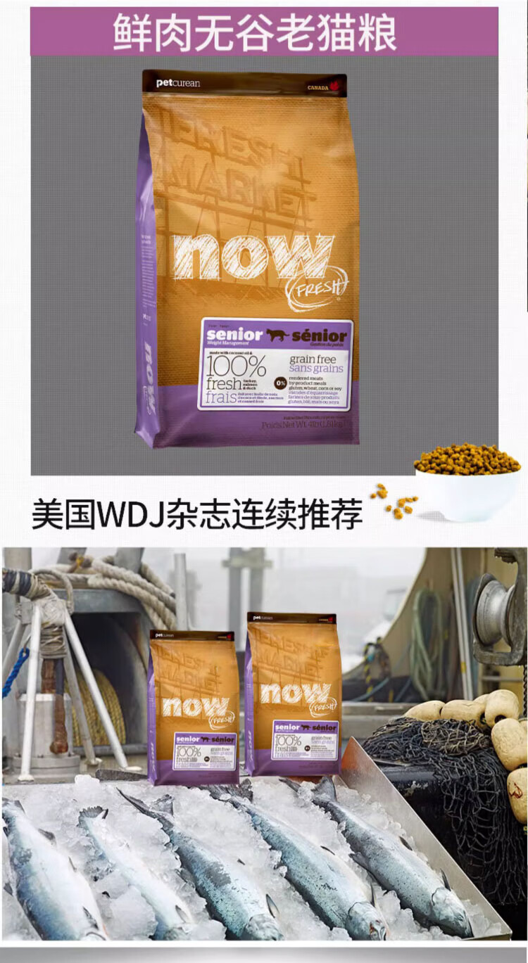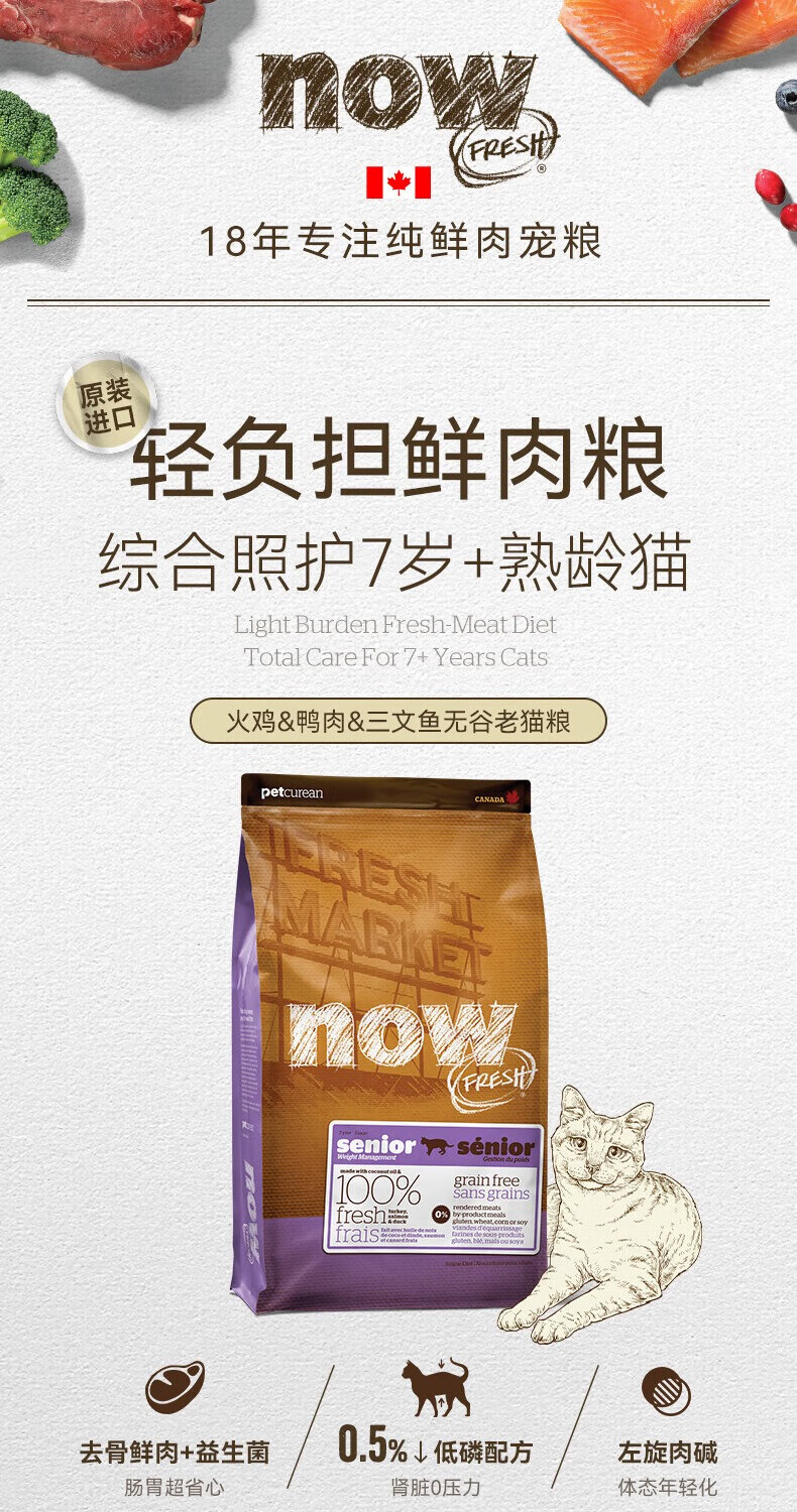 NOW FRESH进口无谷成幼老年猫粮 低磷配方呵护泌尿肾脏,8磅/3.63kg 【热销装】老年猫8磅/3.63kg-派菲标,效期2026.6