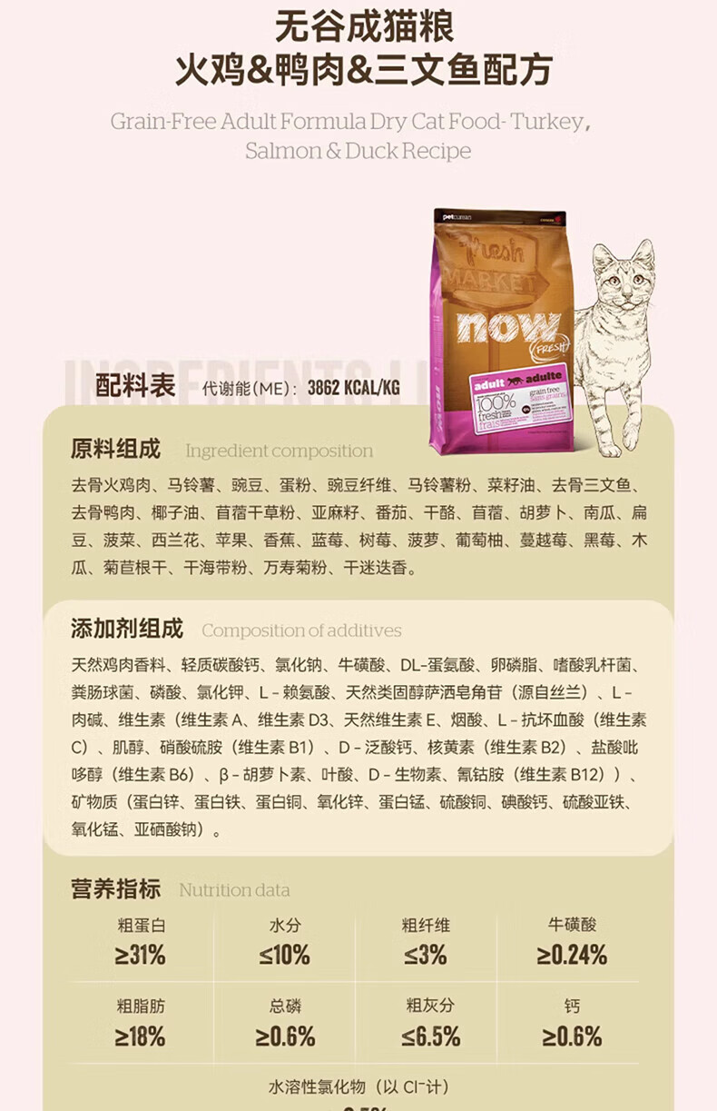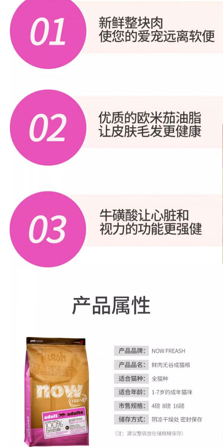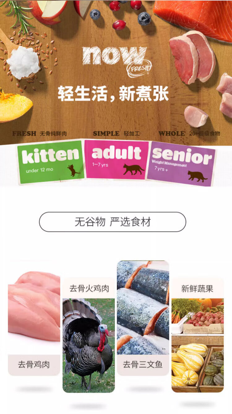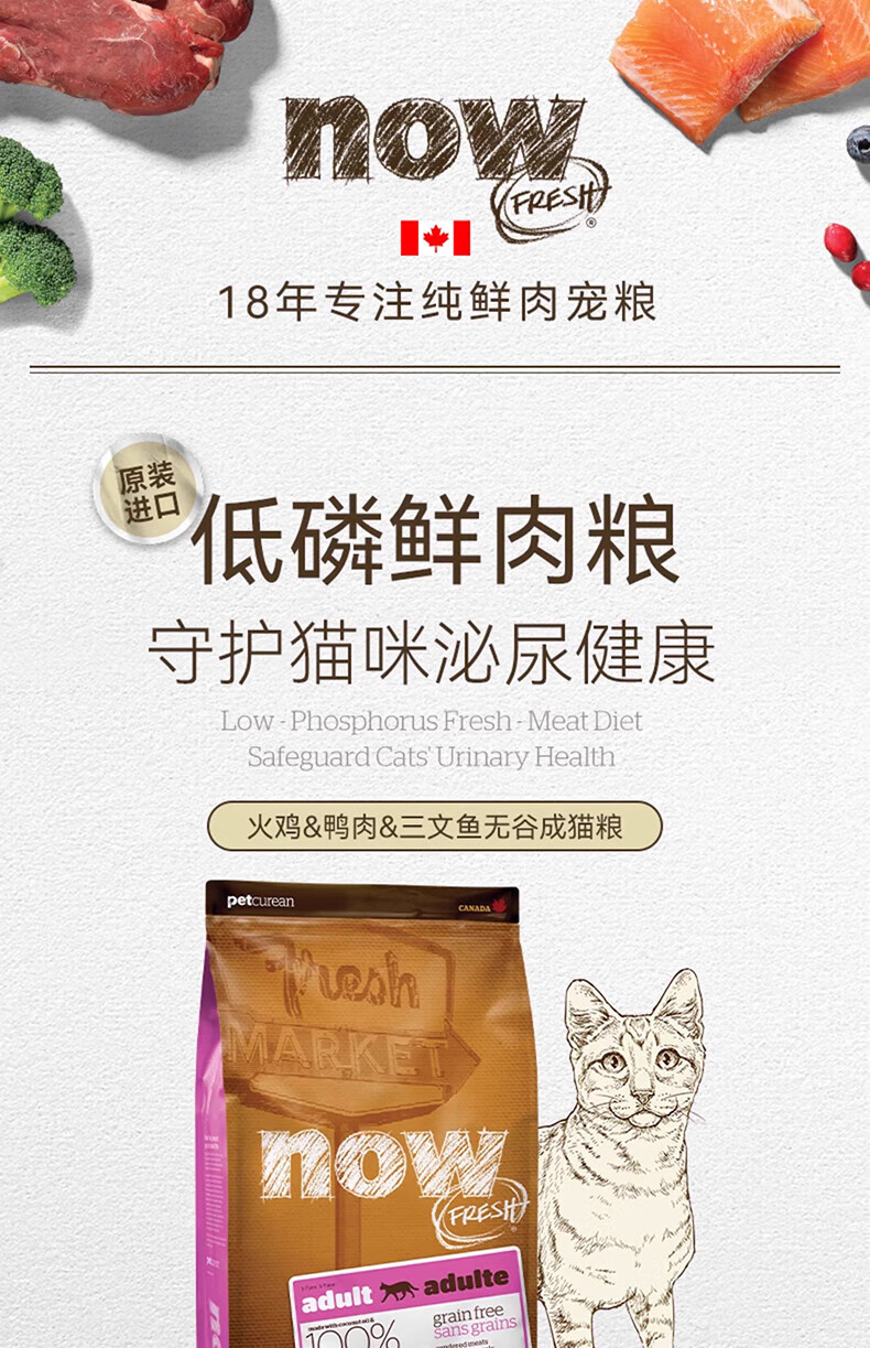 NOW FRESH进口无谷成幼老年猫粮 低磷配方呵护泌尿肾脏,8磅/3.63kg 【热销装】老年猫8磅/3.63kg-派菲标,效期2026.6