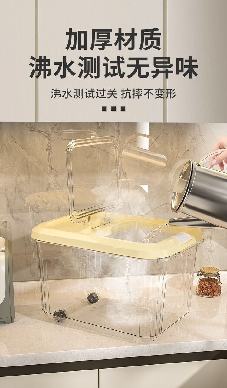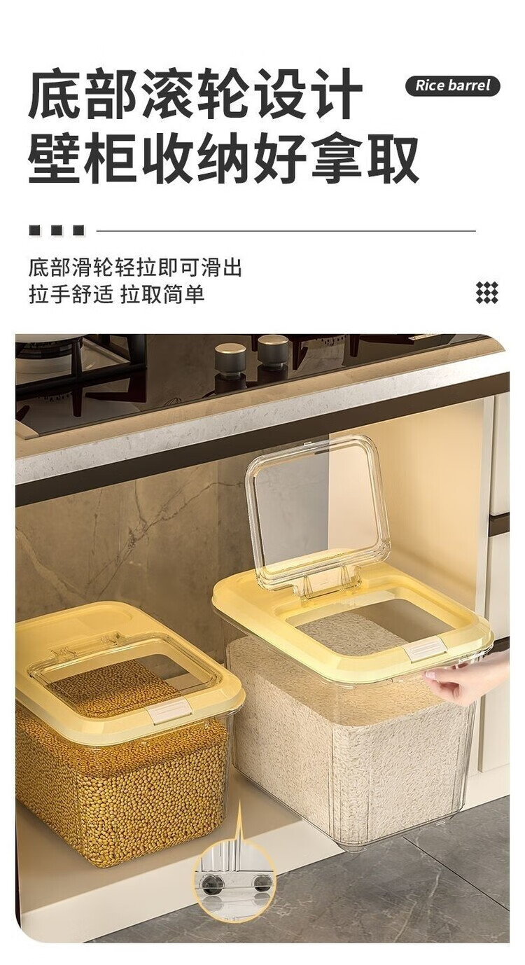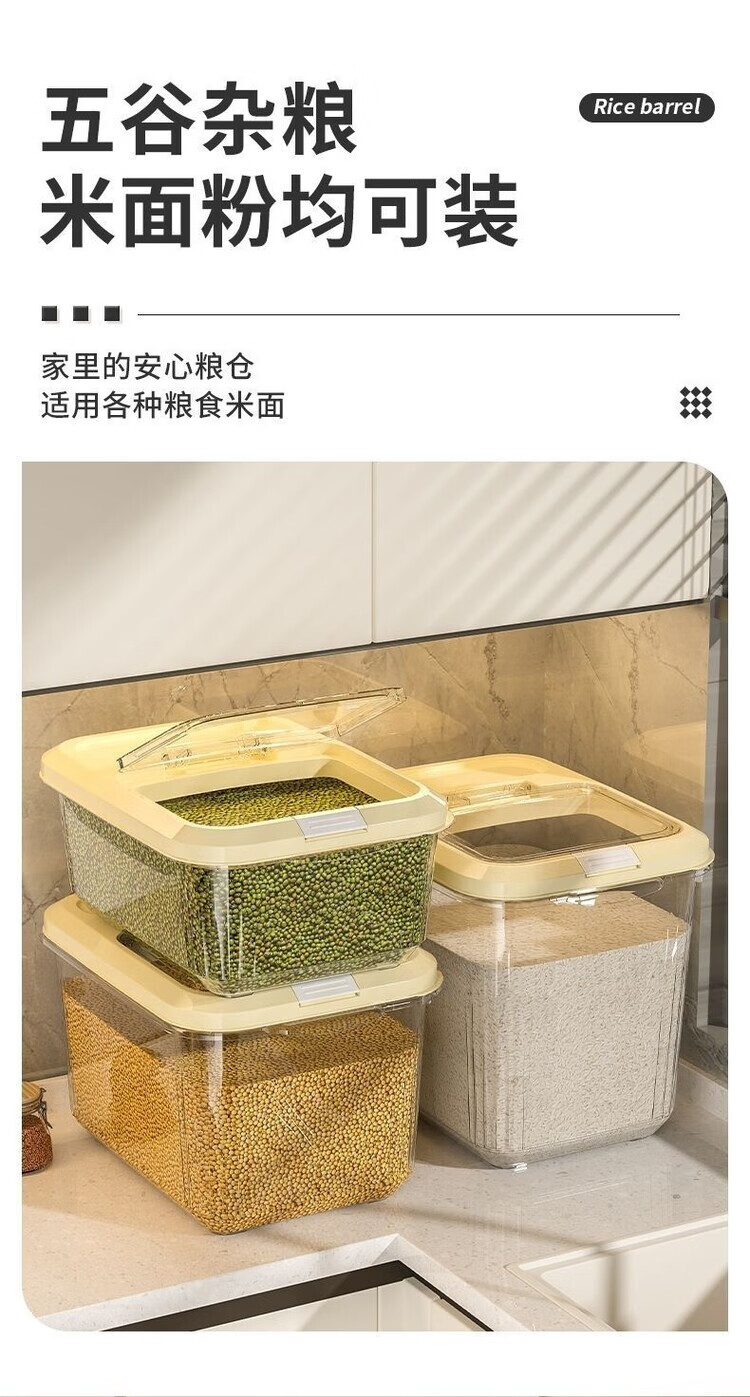 DEATKN米桶家用收纳防虫防潮密封食品级米缸米箱面粉储存罐大米收纳盒 【15斤奶油白透明米桶送米杯】 加厚款【食品级pp材质】