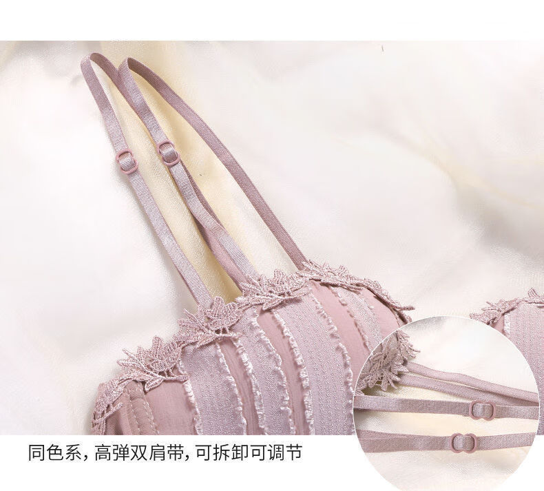 无肩带内衣女小胸聚拢防滑无钢圈前扣抹胸性感蕾丝美背文胸罩加厚 粉色套装 3475AB