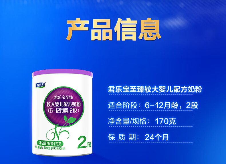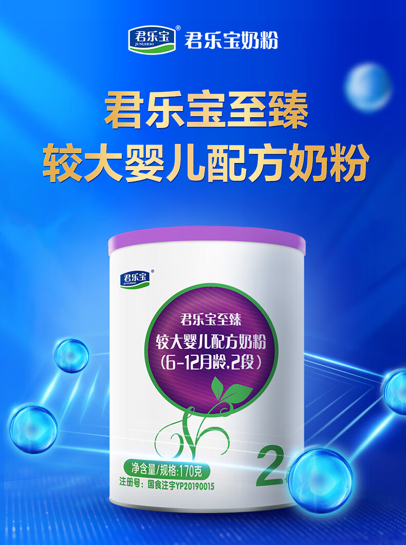 君乐宝(JUNLEBAO)至臻 A2奶牛奶粉2段较大婴儿配方奶粉(6-12月龄)听装170g
