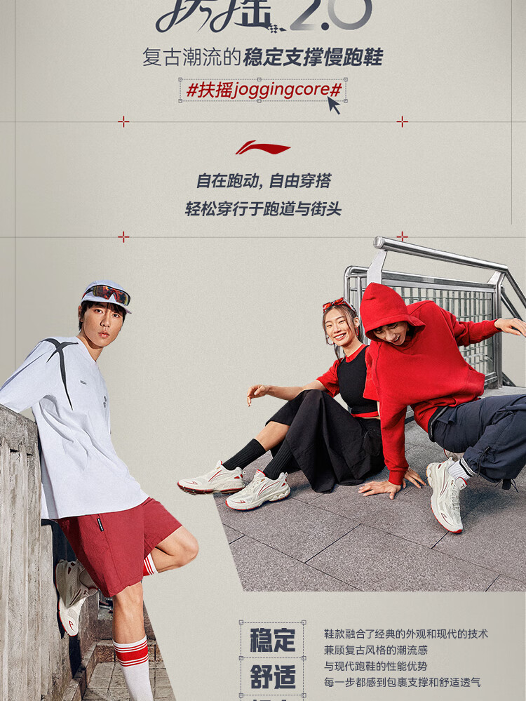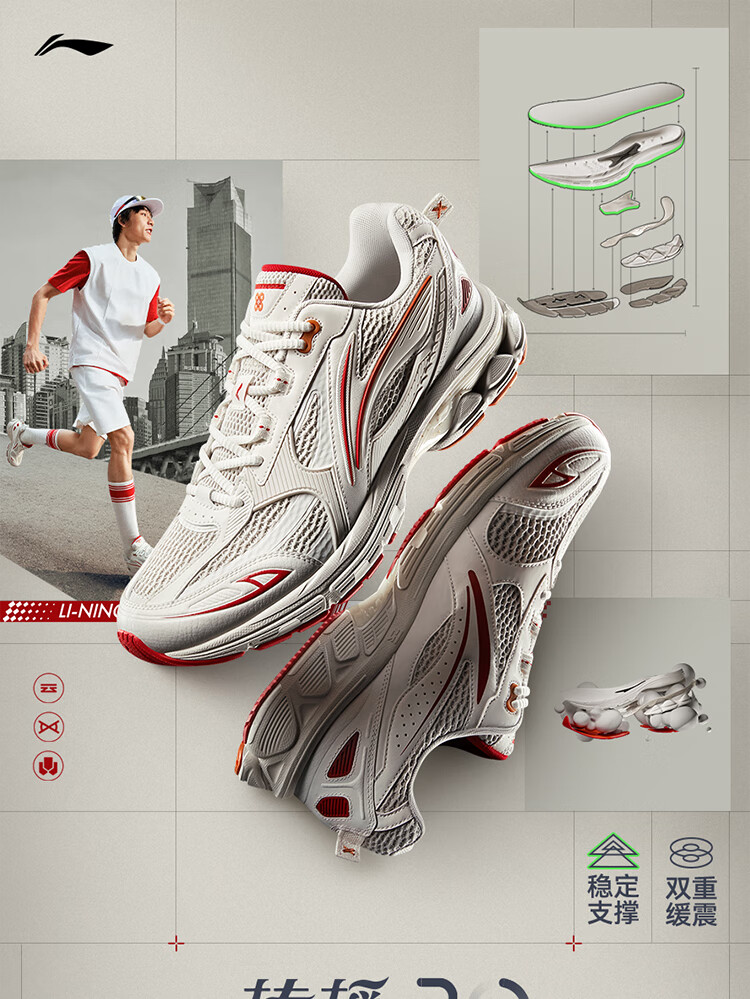 李宁扶摇 2.0丨跑步鞋男鞋透气复古老爹鞋运动鞋ARXU001