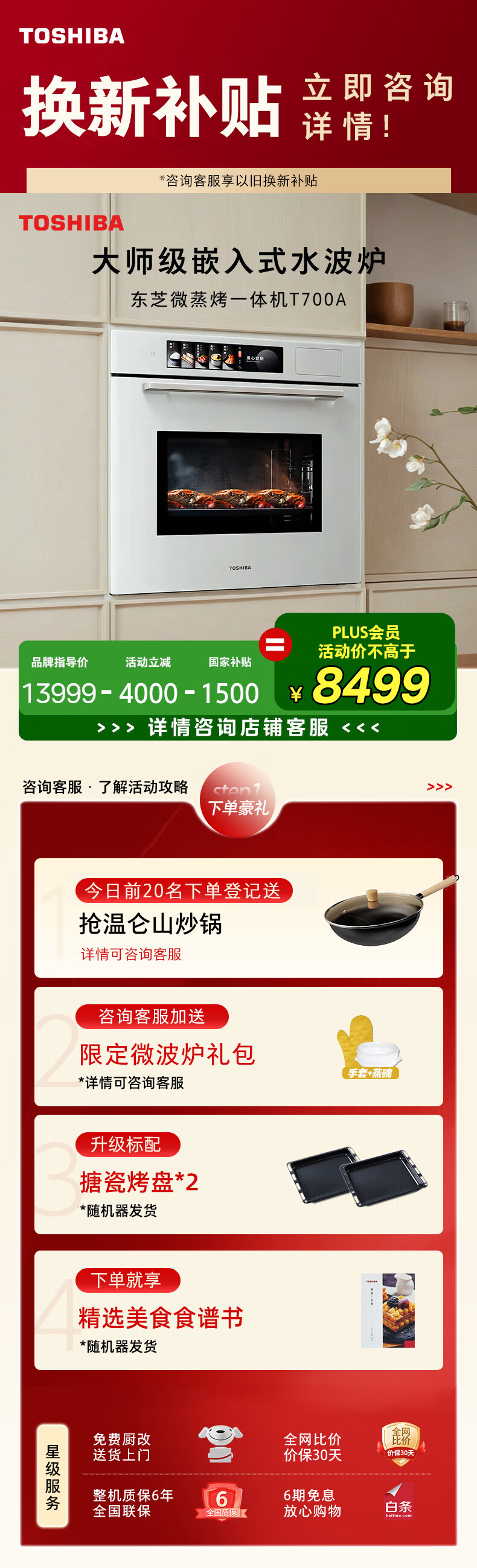 东芝(TOSHIBA)【大白茶】T700A嵌入式水波炉微蒸烤一体机 70L容量臻彩屏250℃过热水蒸气变频微波炉炸炖蒸烤箱 【旗舰顶配】70L大师级水波炉 | 玉肌纱系列