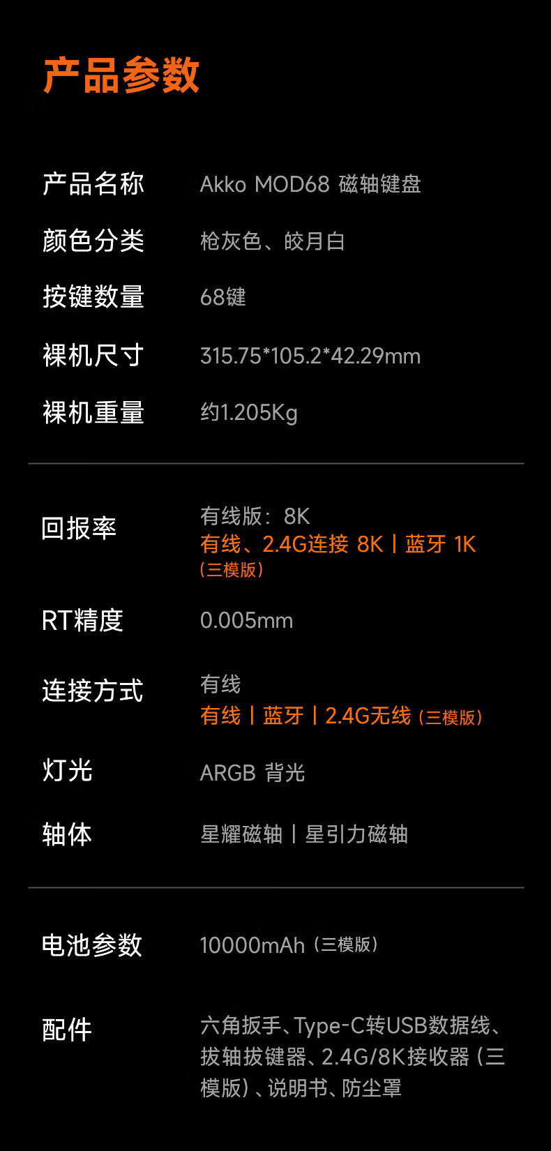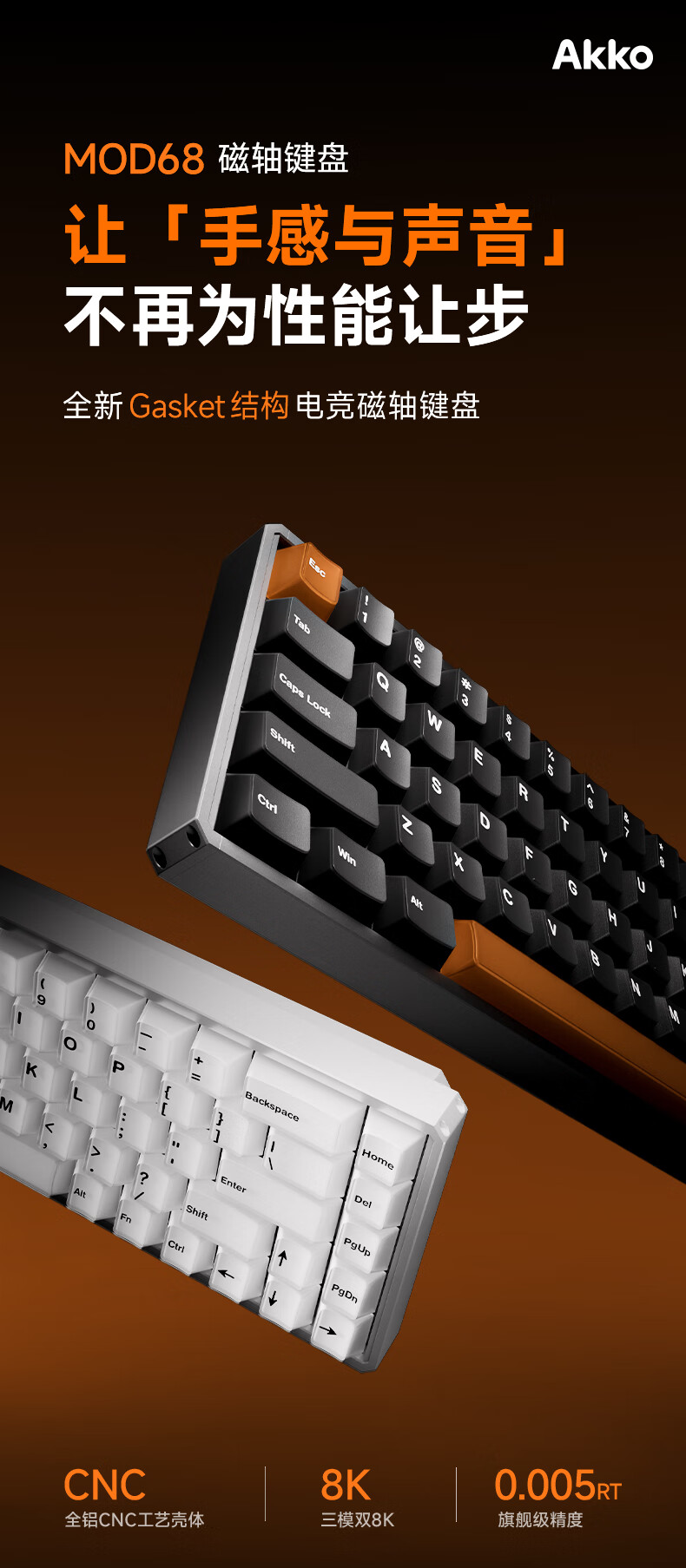 AKKOMOD68铝坨坨RT电竞游戏专用三角洲磁轴键盘客制化gasket结构有线8K回报率68配列机械键盘 无畏契约