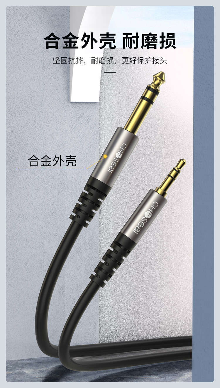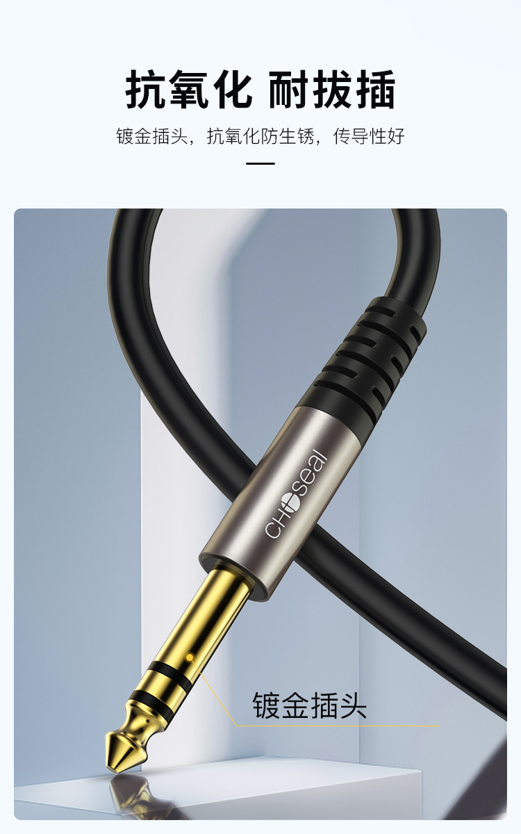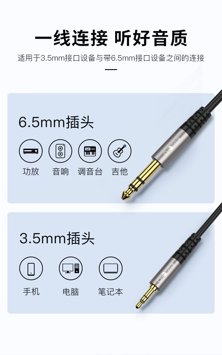 秋叶原(CHOSEAL)3.5mm转6.5mm公对公音频线 手机电脑音响箱线连接线 6.35调音台转换线 8米 QAD19BKT8