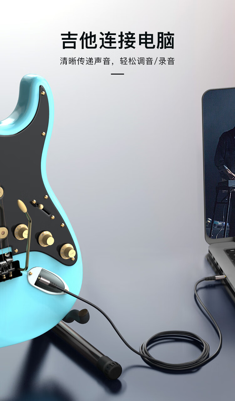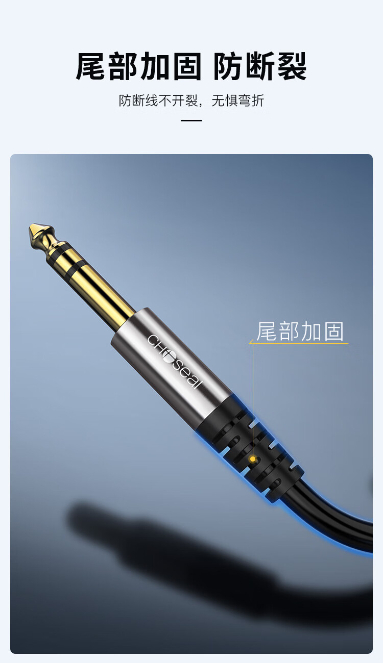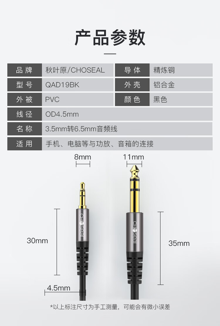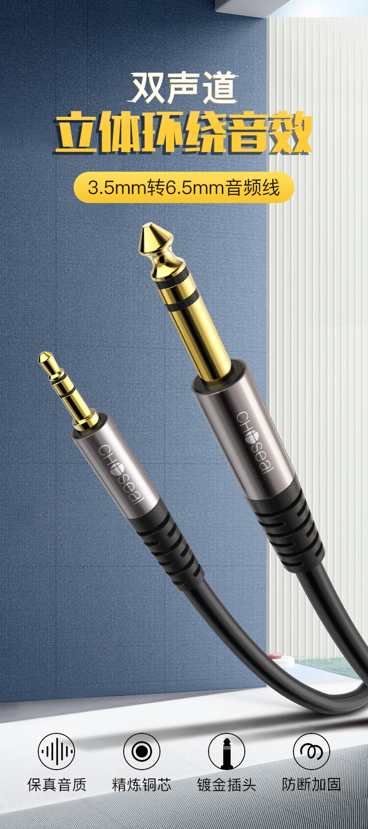 秋叶原(CHOSEAL)3.5mm转6.5mm公对公音频线 手机电脑音响箱线连接线 6.35调音台转换线 8米 QAD19BKT8