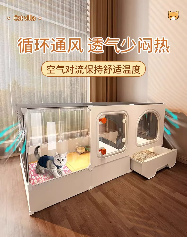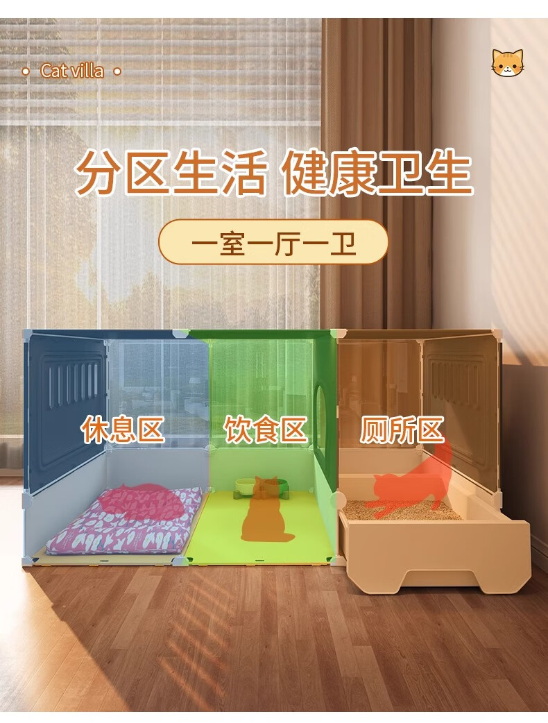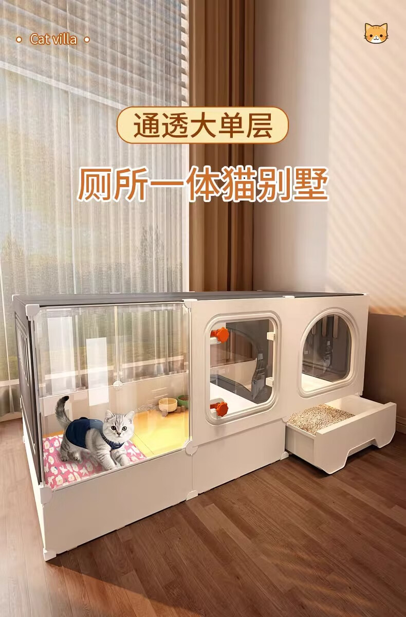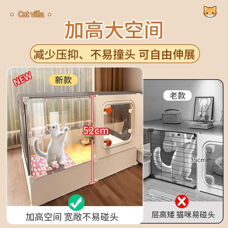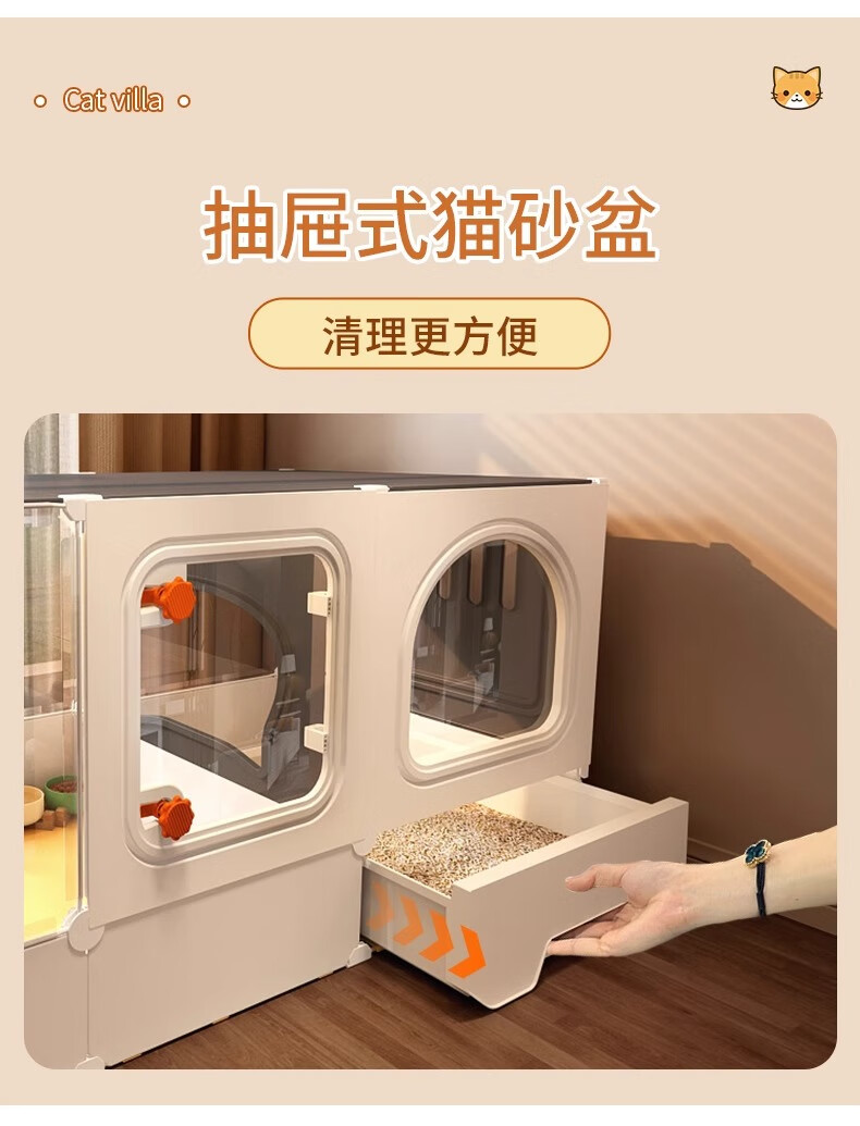 蔻丝猫笼子带厕所一体猫别墅家用超大猫产房一室一厅一卫通风猫窝猫柜 二代升级加高53cm-成年猫-长106大平层 玩乐款:猫砂盆+铲+逗猫棒
