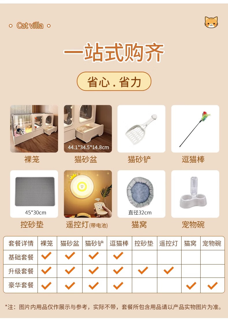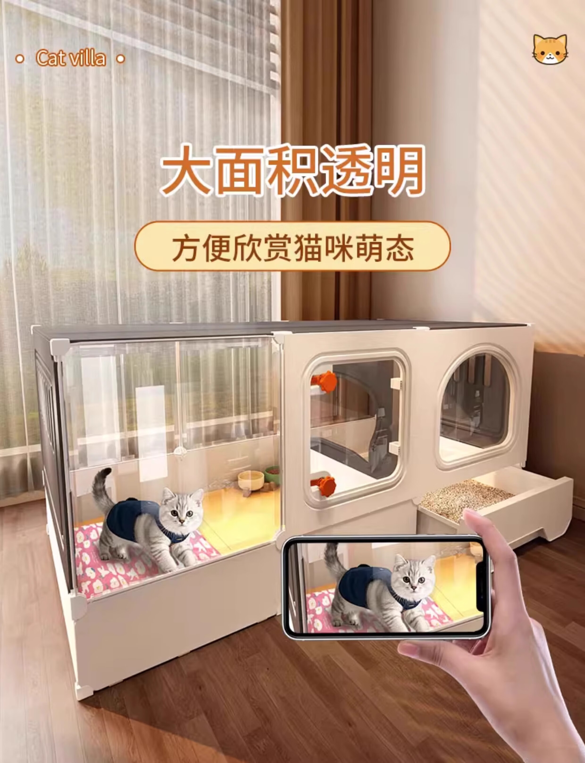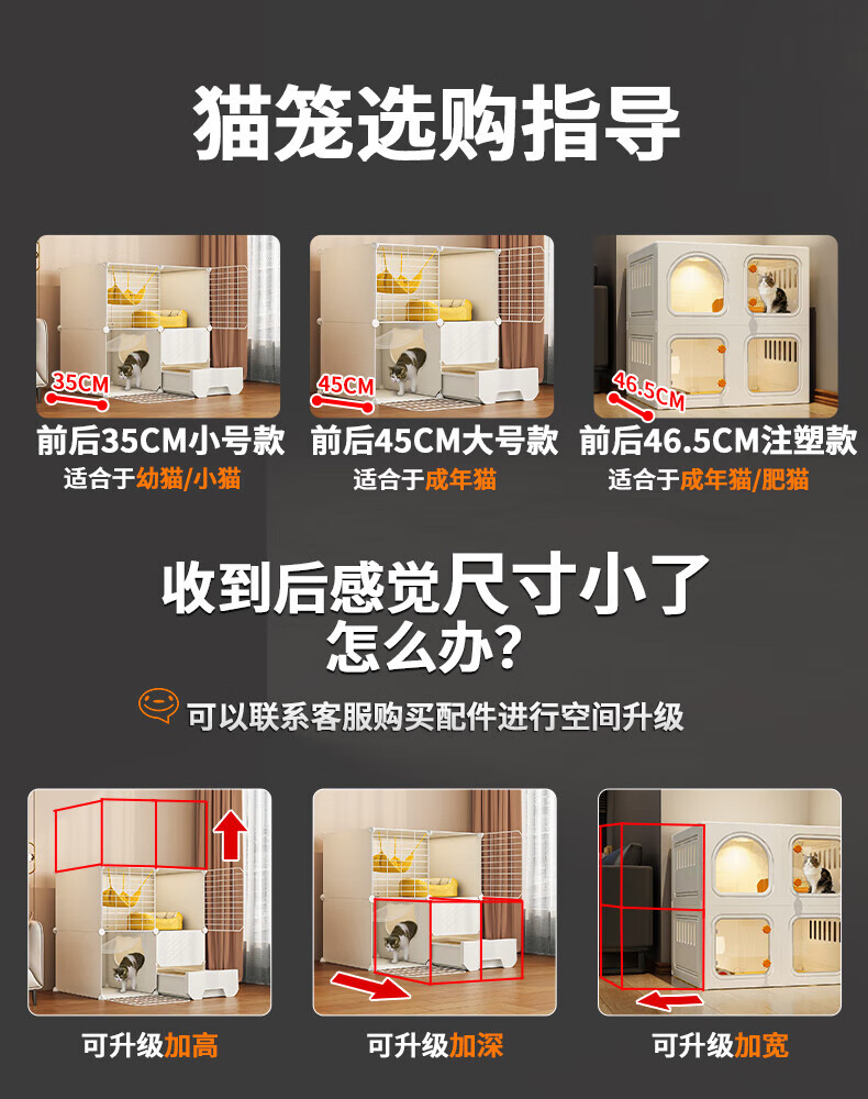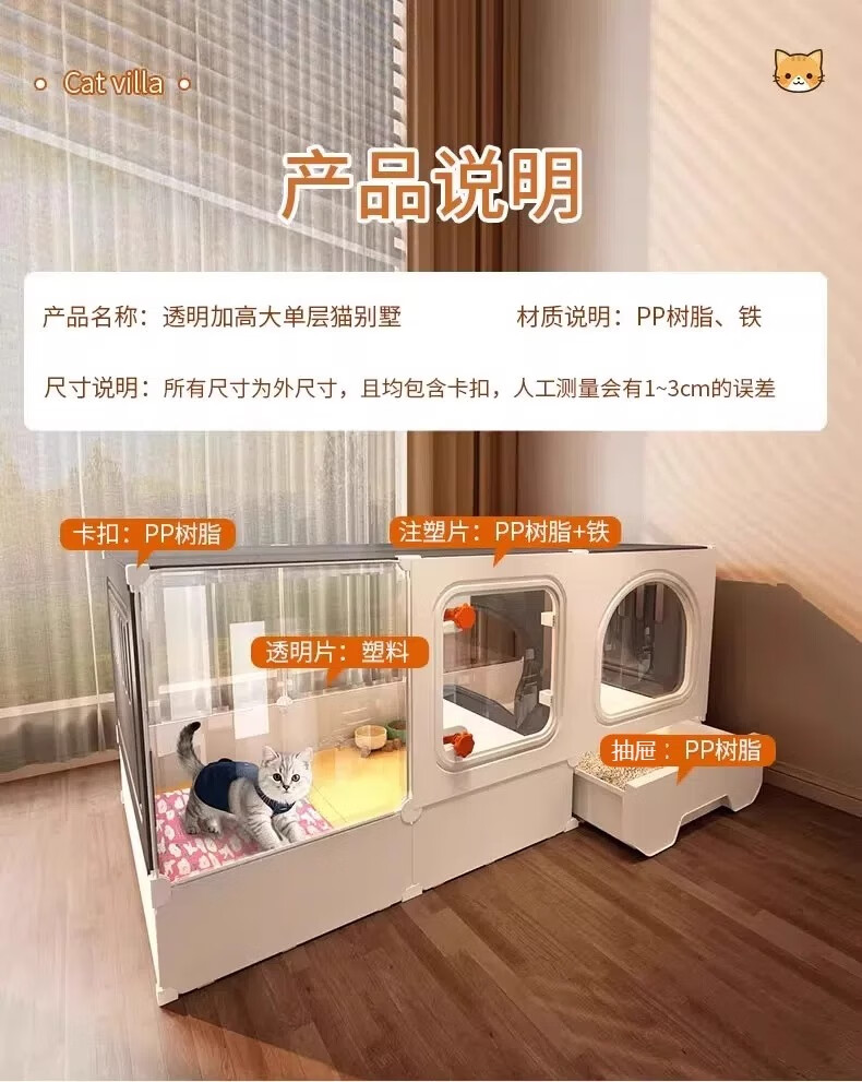 蔻丝猫笼子带厕所一体猫别墅家用超大猫产房一室一厅一卫通风猫窝猫柜 二代升级加高53cm-成年猫-长106大平层 玩乐款:猫砂盆+铲+逗猫棒