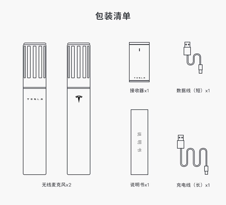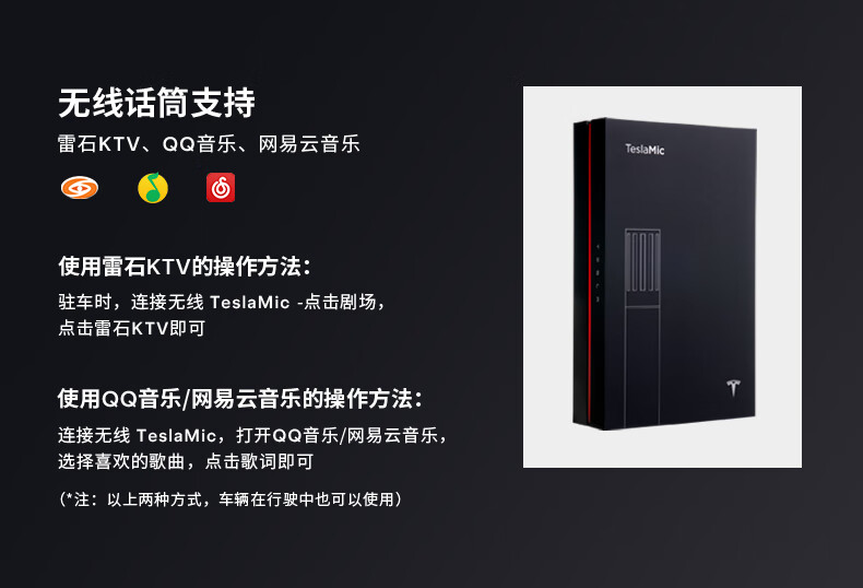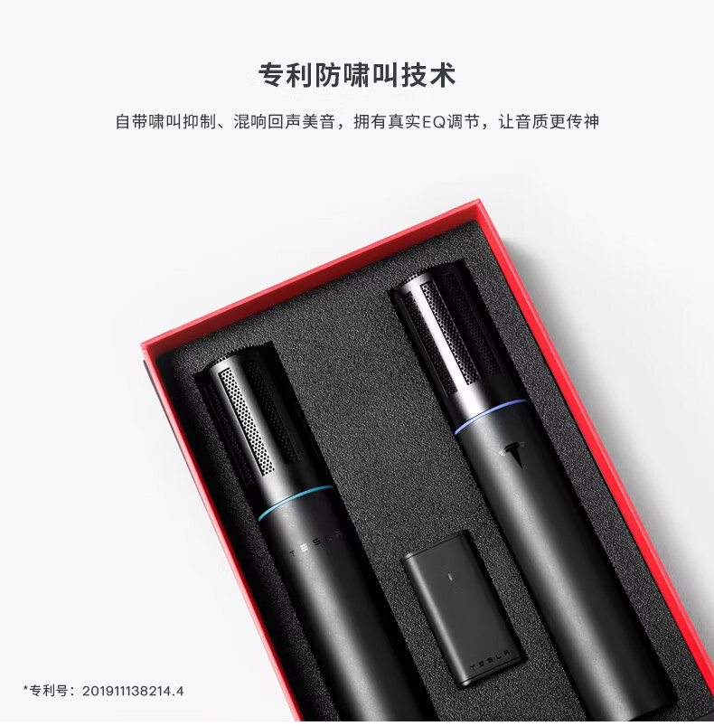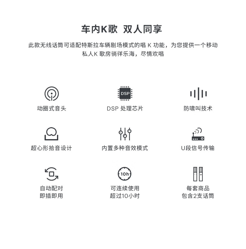 特斯拉(Tesla)官方 TeslaMic无线双人同享车载麦克风户外k歌娱乐ktvmodel3/y/s/x TeslaMic车载麦克风