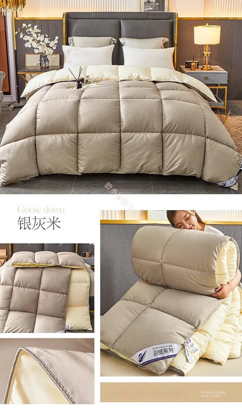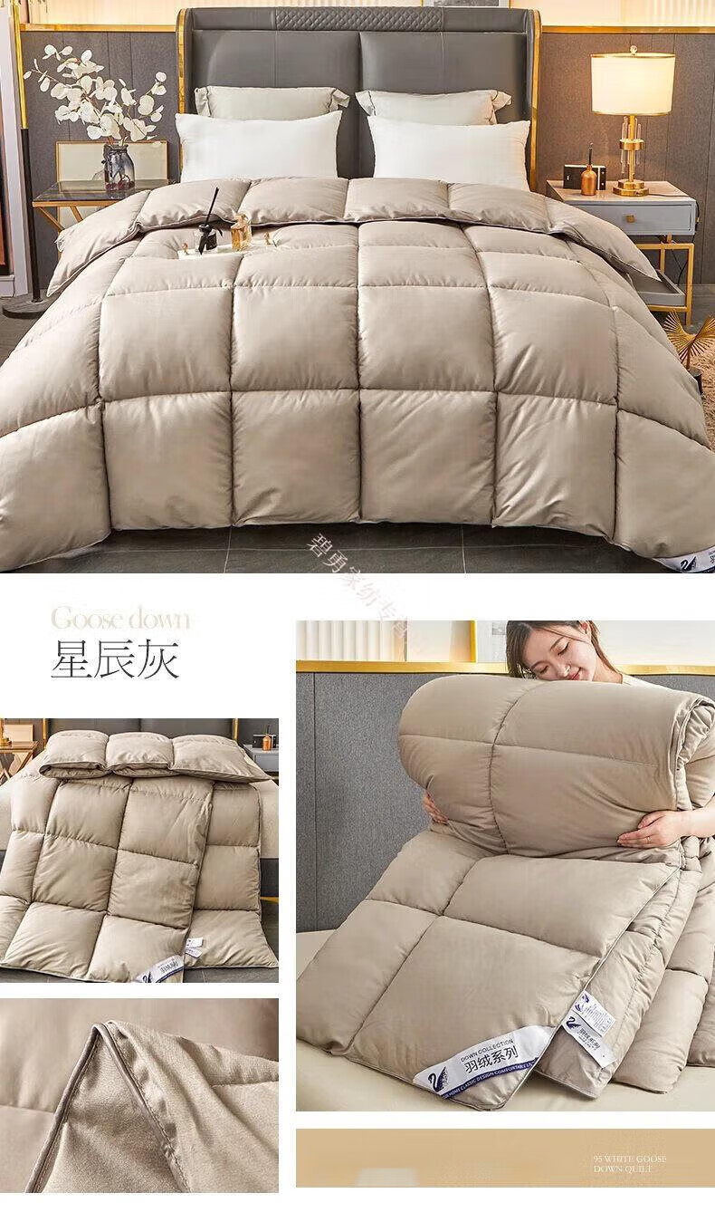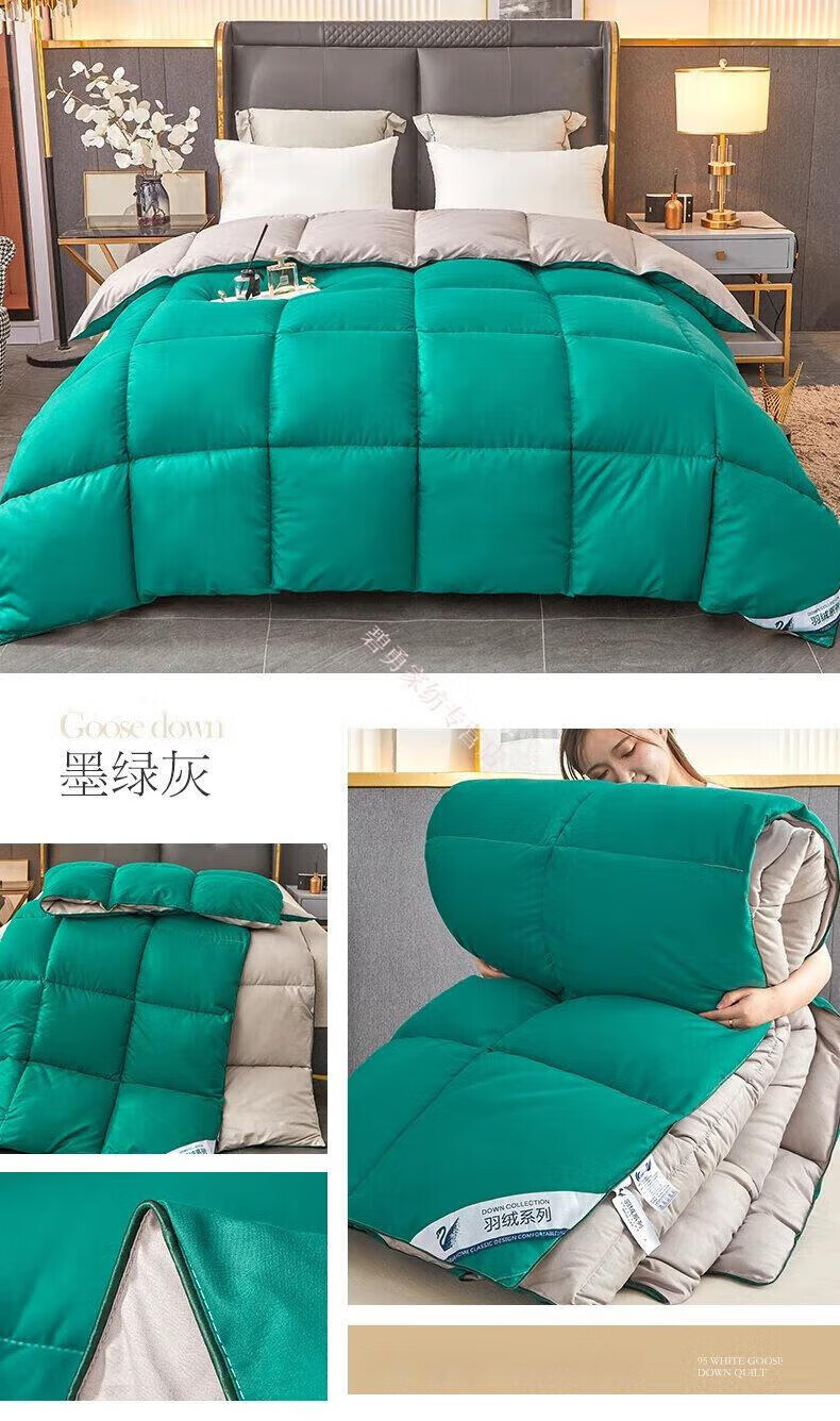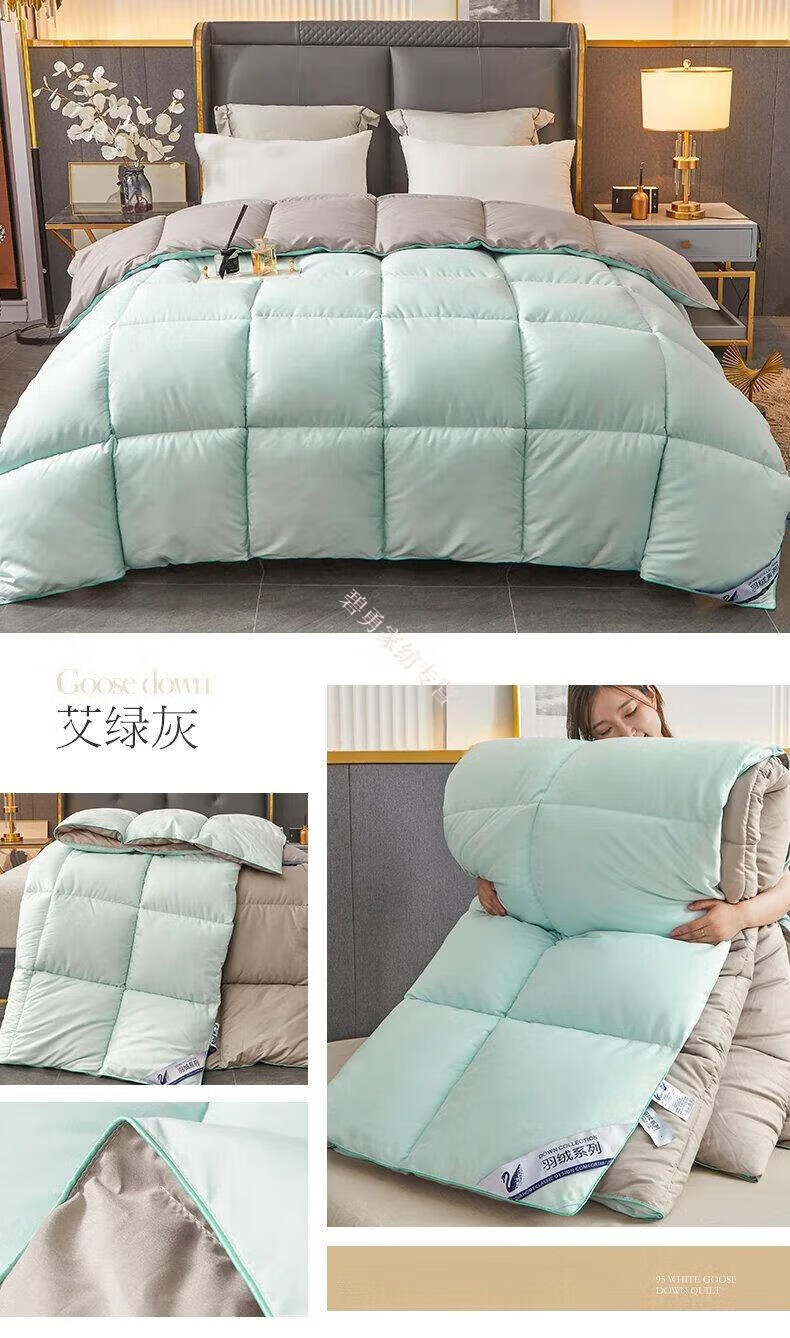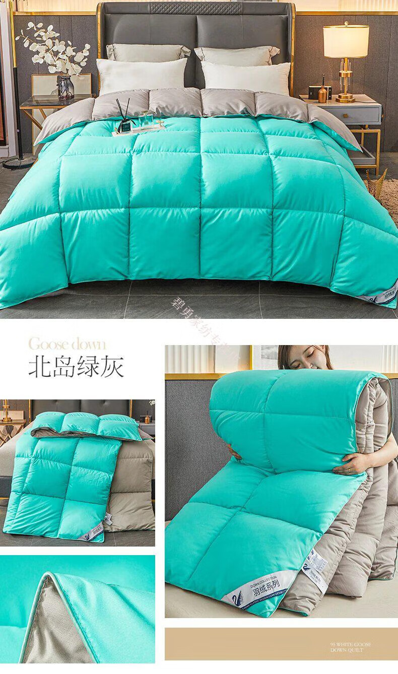 恒源祥羽丝绒被95鹅毛绒被冬被加厚保暖鸭丝绒被春秋被子单双人空调被芯 艾绿灰 150*200cm 3斤 夏凉被