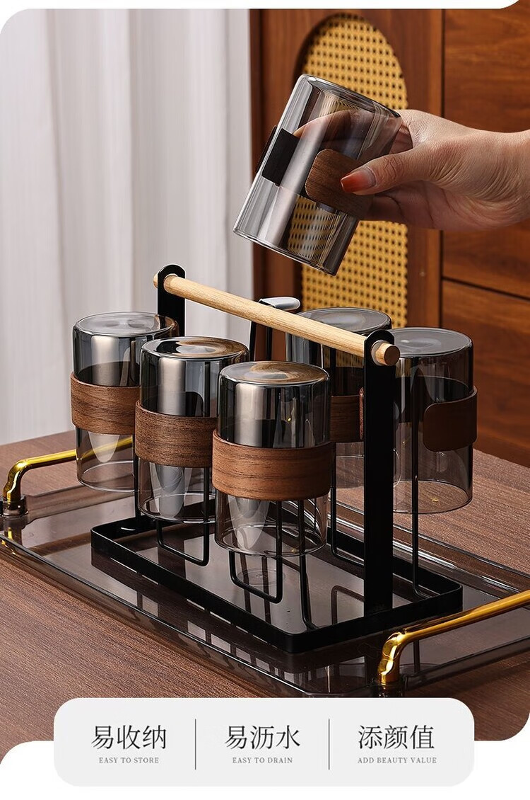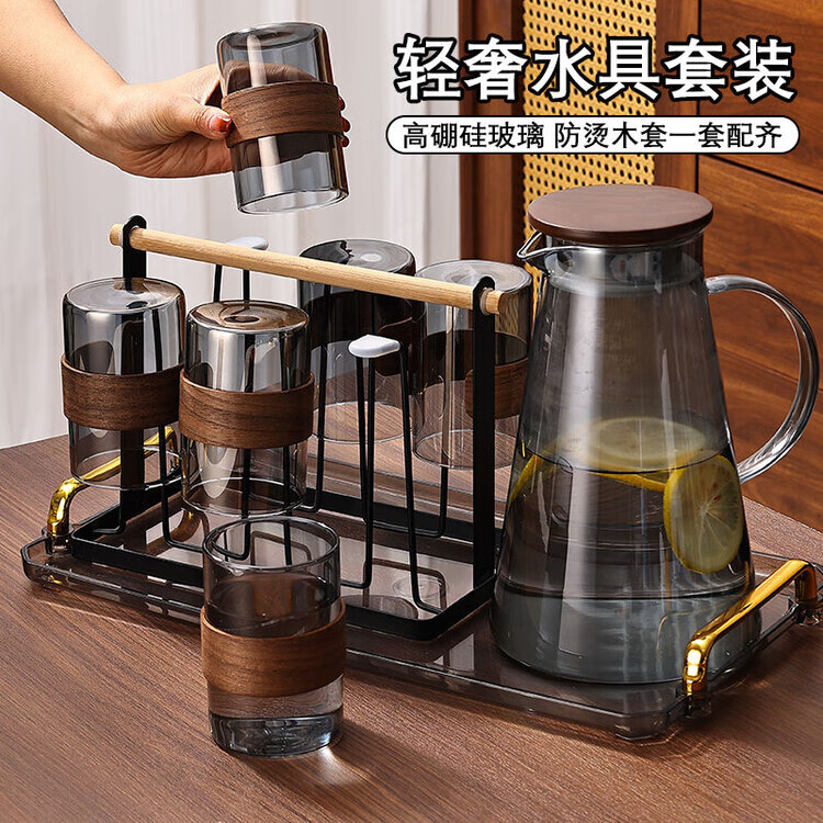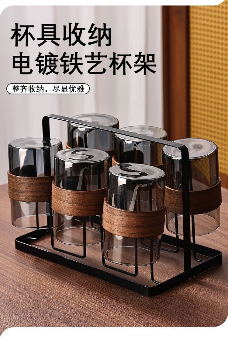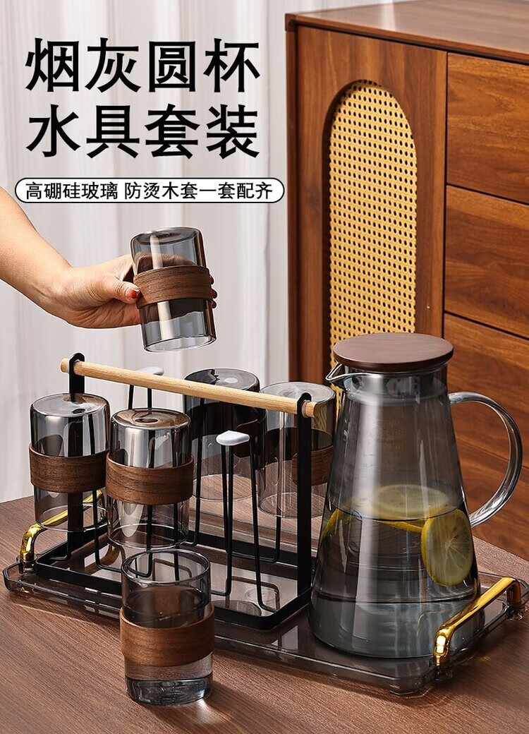 简漾玻璃杯耐高温中式家用喝水杯轻奢茶具水具套装客厅待客防爆冷水壶 烟灰圆杯6只