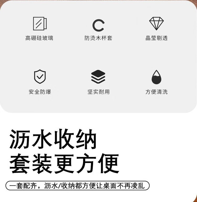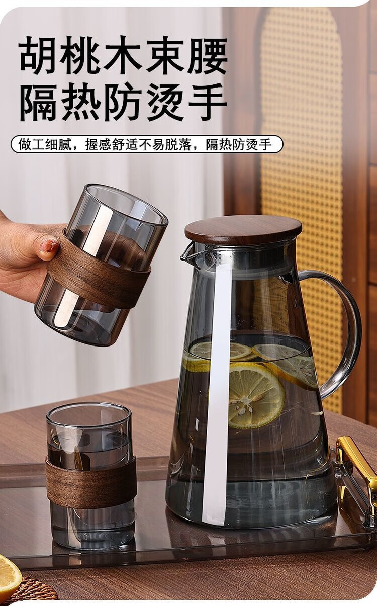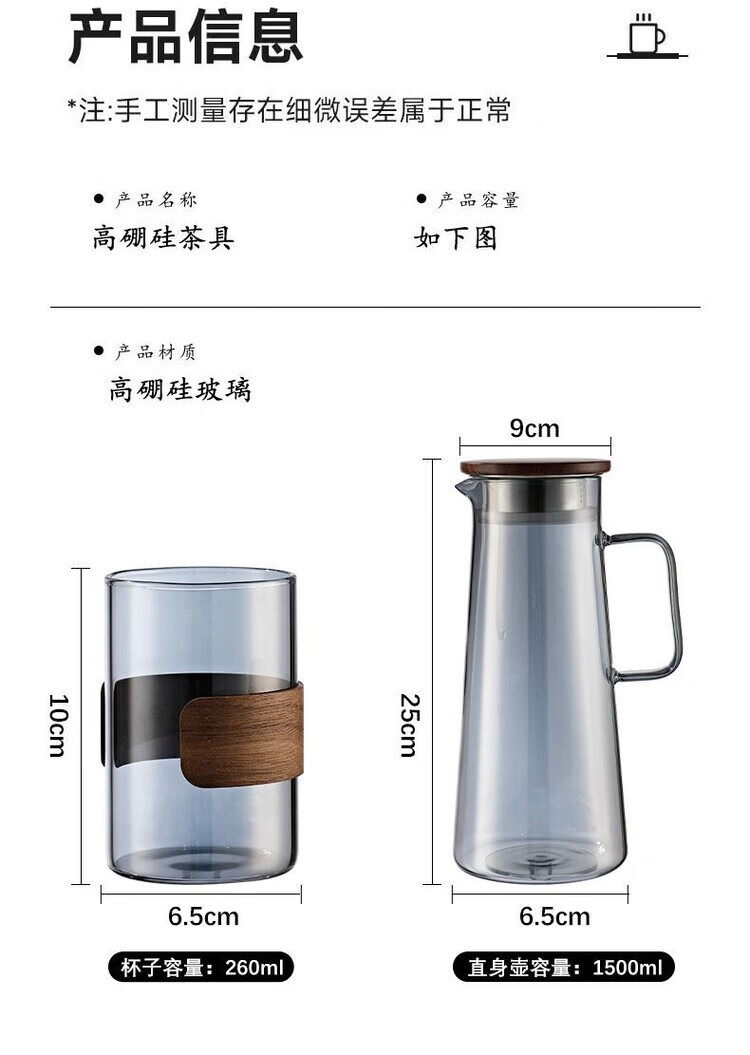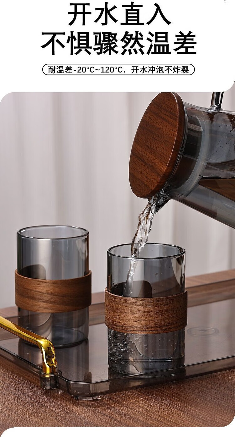 简漾玻璃杯耐高温中式家用喝水杯轻奢茶具水具套装客厅待客防爆冷水壶 烟灰圆杯6只