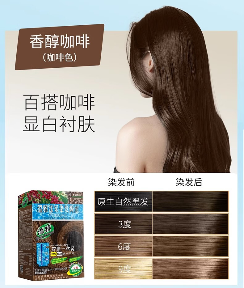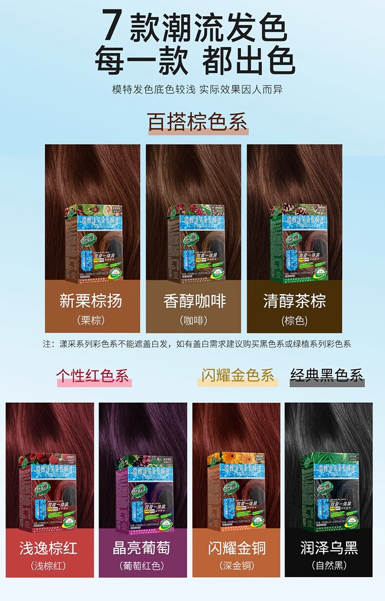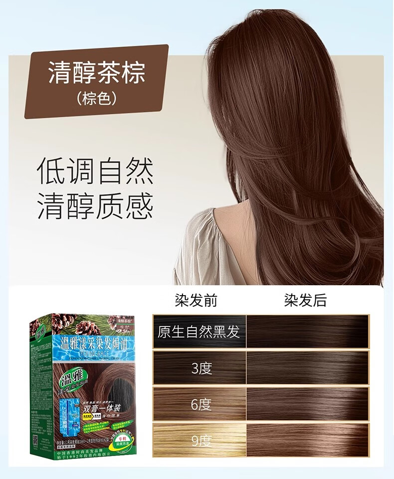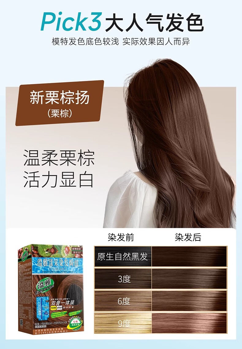 温雅漾采染发膏染发剂植物护发染头男士女士双膏一体装彩染4袋 栗棕色 【染洗护套餐一】(赠3袋染洗专配组合) 共144ml(4袋盒装)