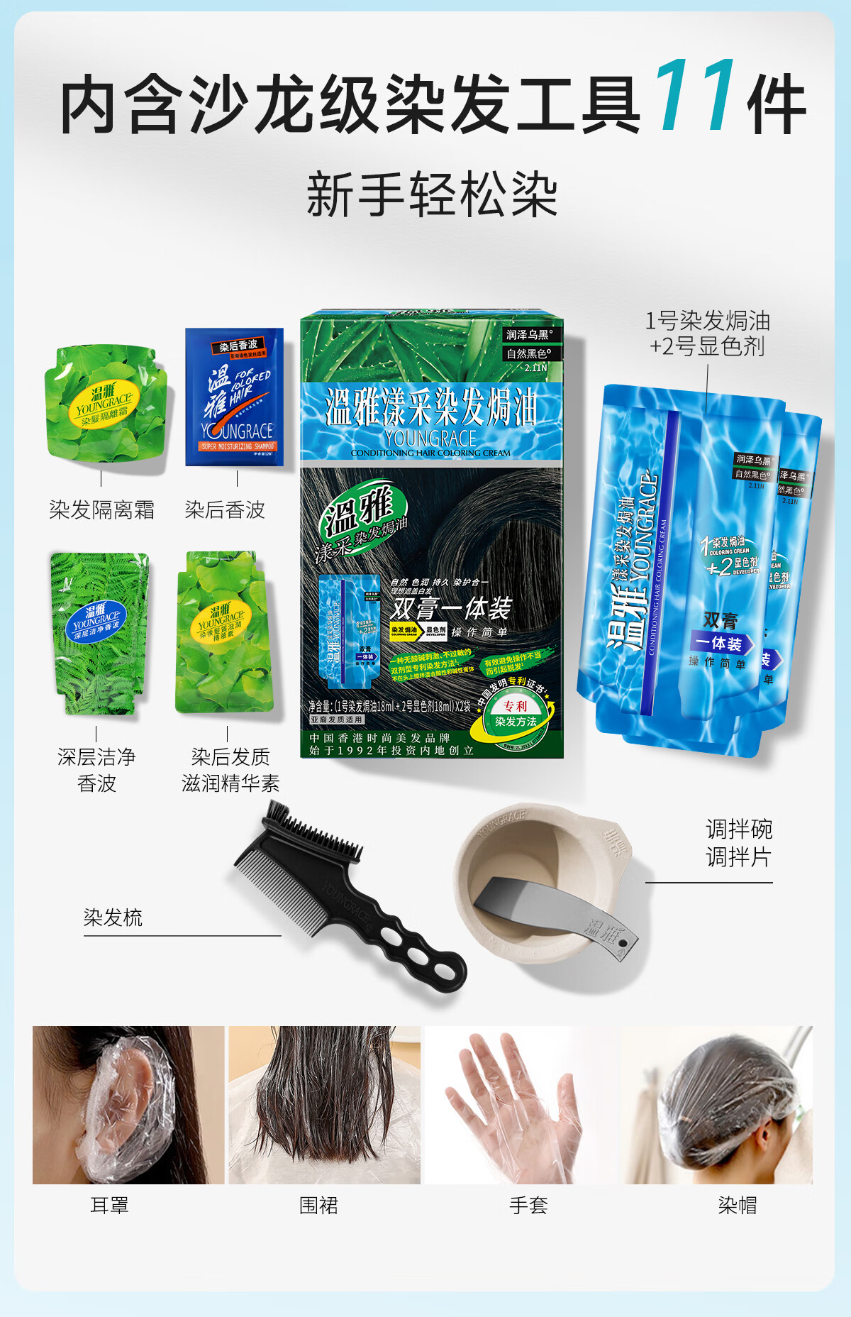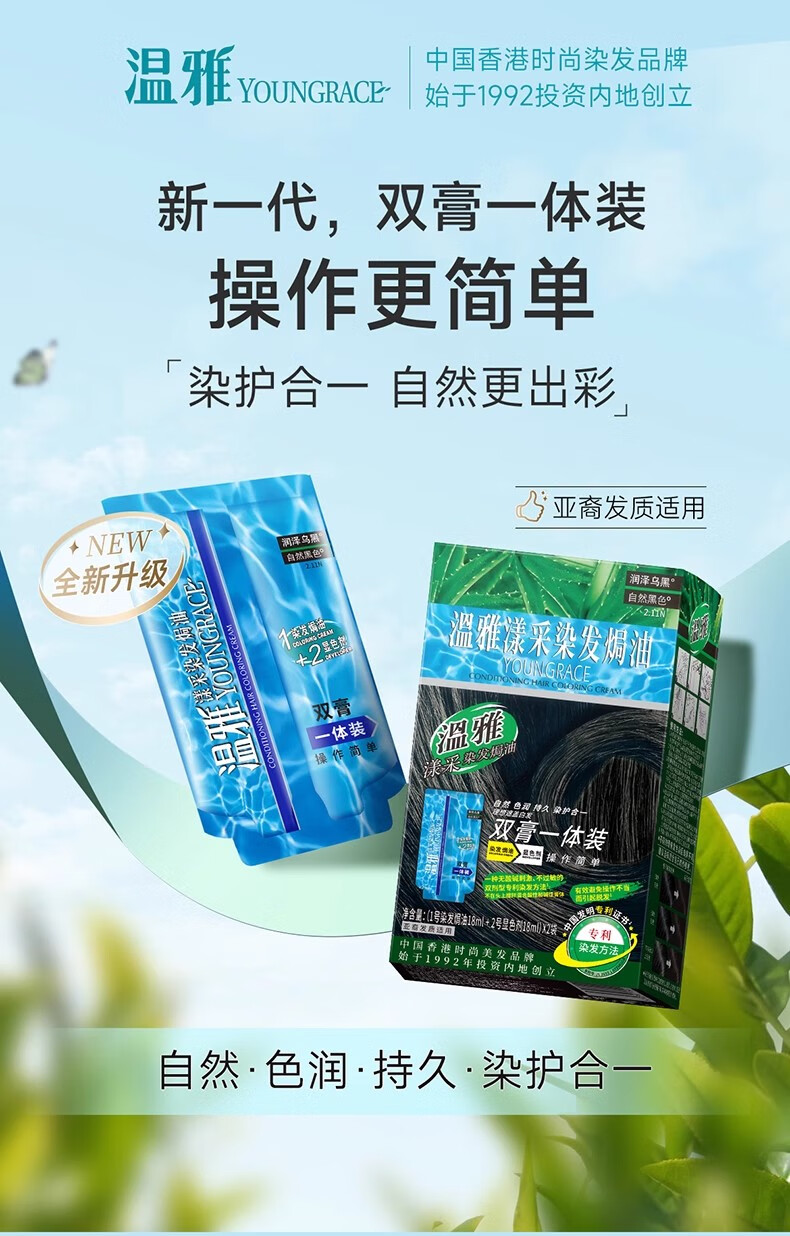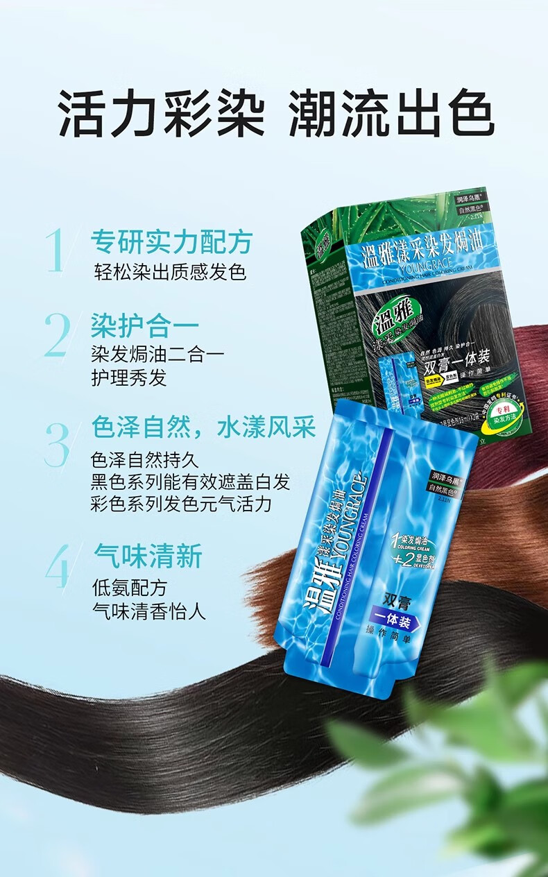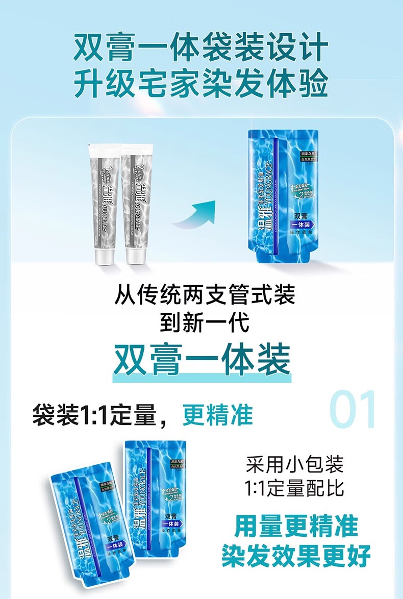 温雅漾采染发膏染发剂植物护发染头男士女士双膏一体装彩染4袋 栗棕色 【染洗护套餐一】(赠3袋染洗专配组合) 共144ml(4袋盒装)