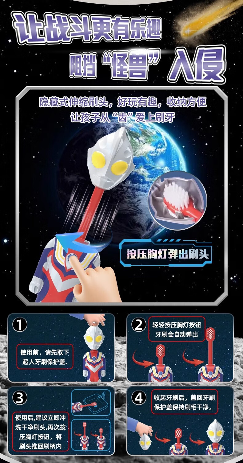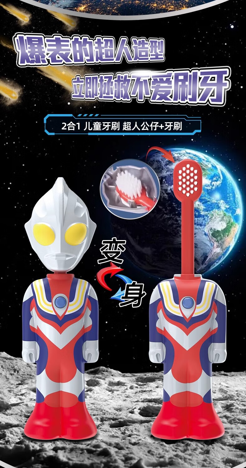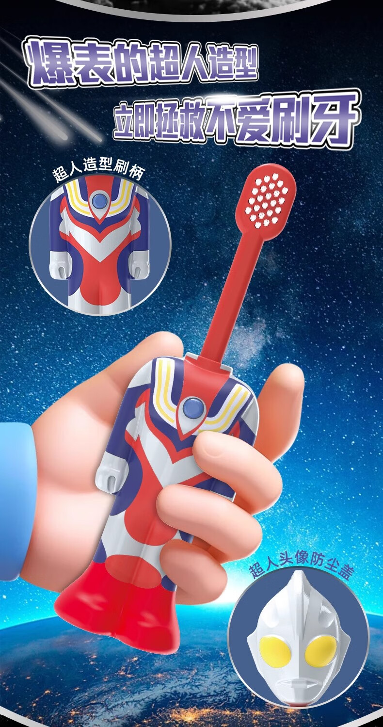 奥特曼牙刷可伸缩超弹乐卡通儿童牙刷超细软毛3-12岁小学生男孩 迪迦+赛罗【独立彩盒】2支装