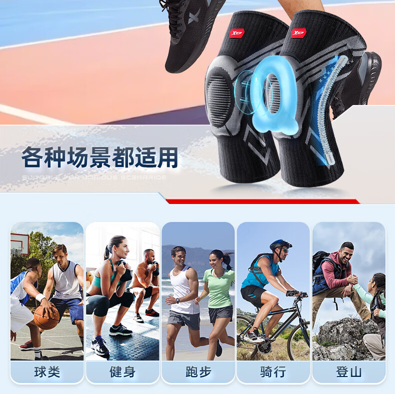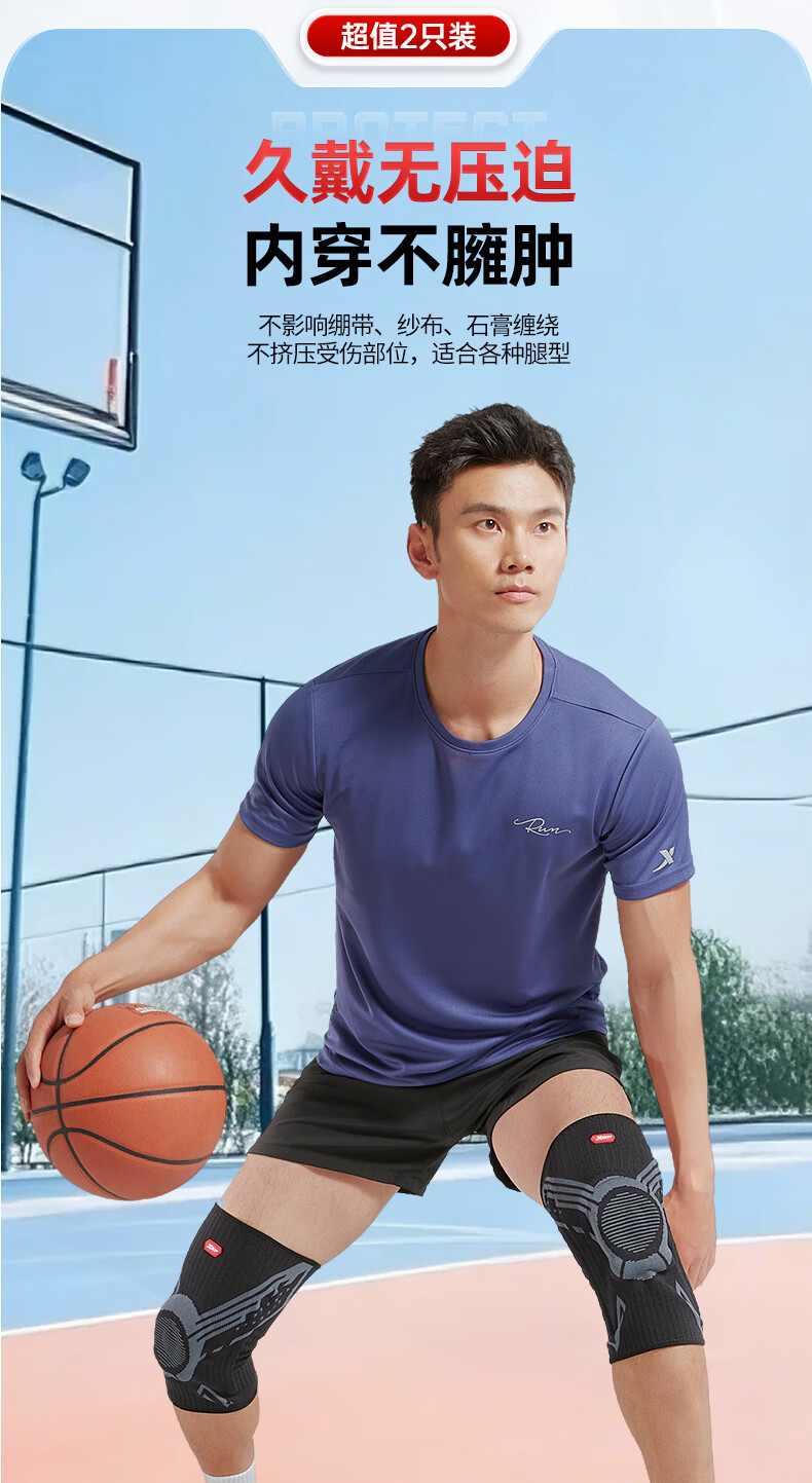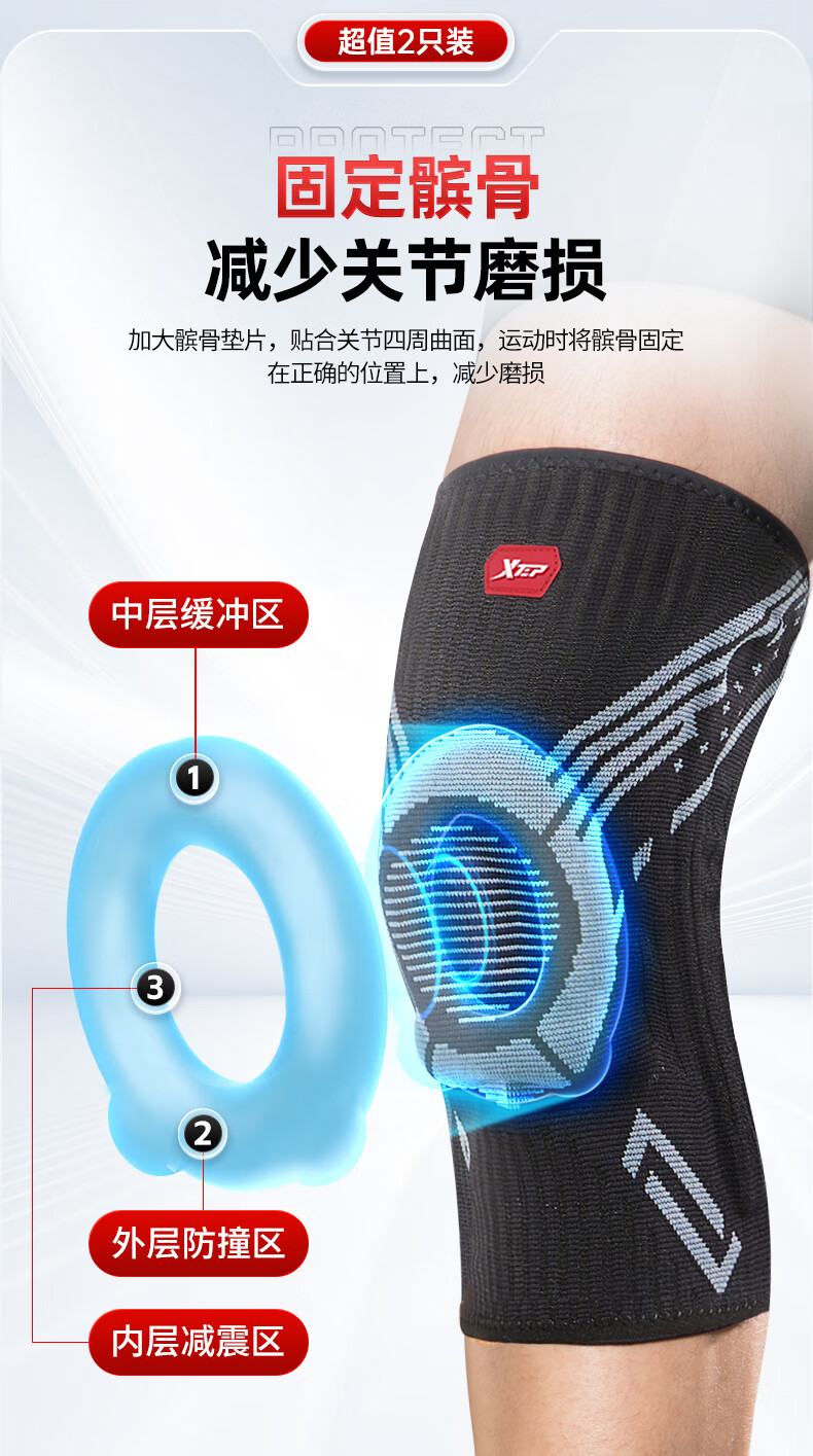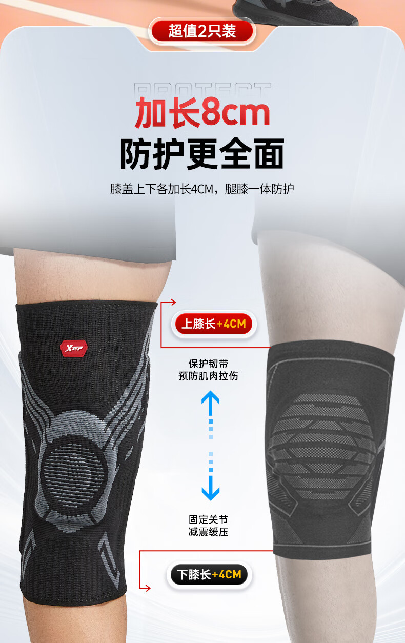 特步(XTEP)护膝保暖运动跑步专用半月板装备篮球膝盖护具男羽毛球登山髌骨带