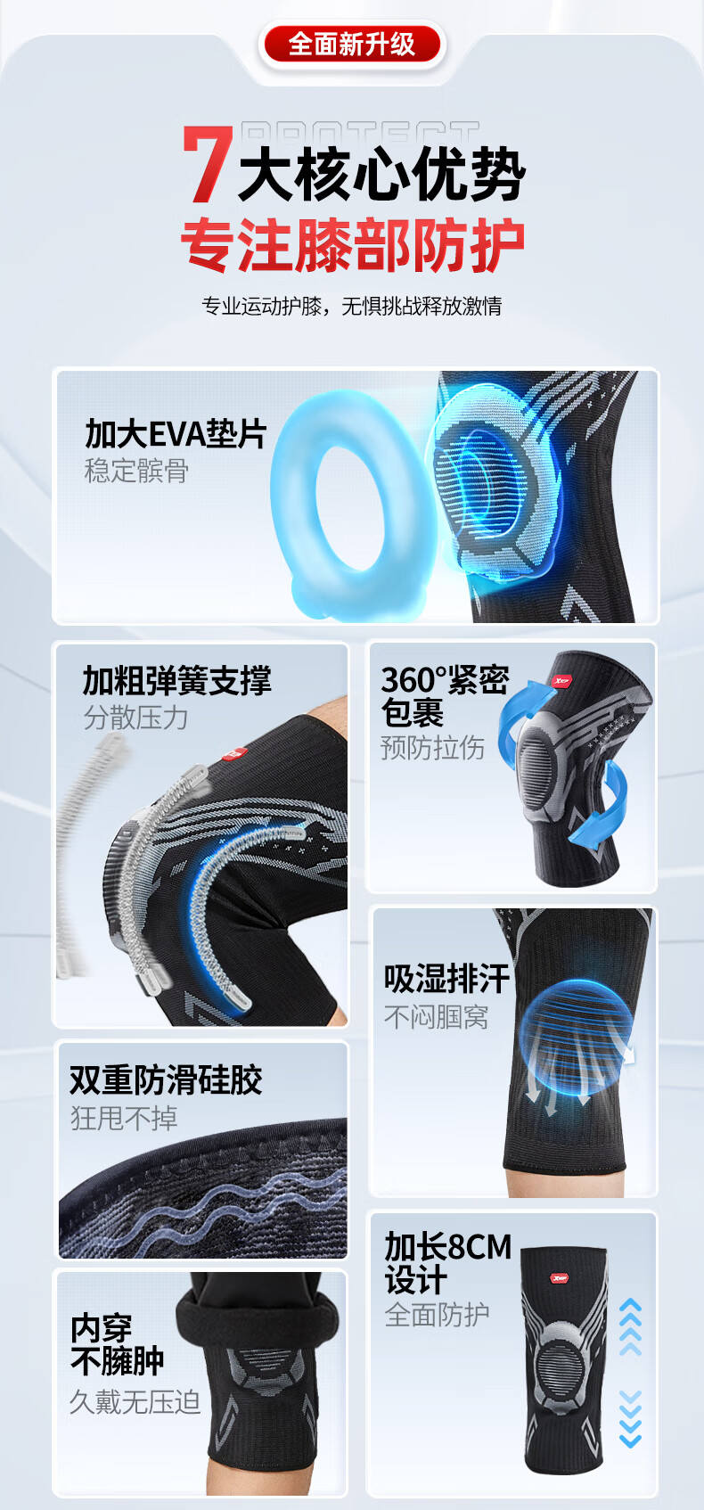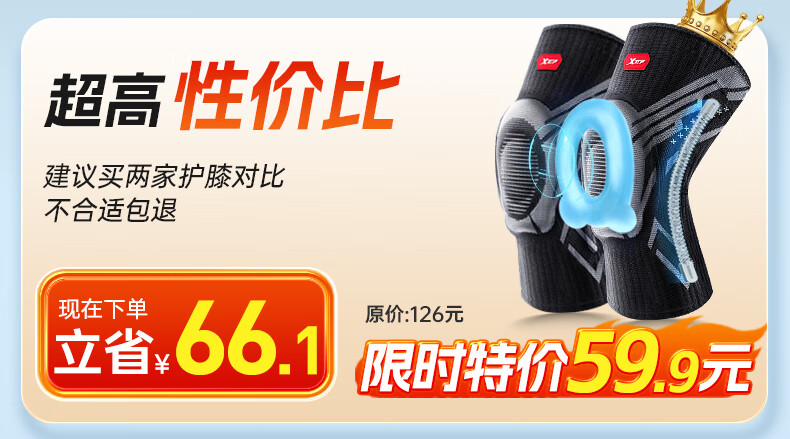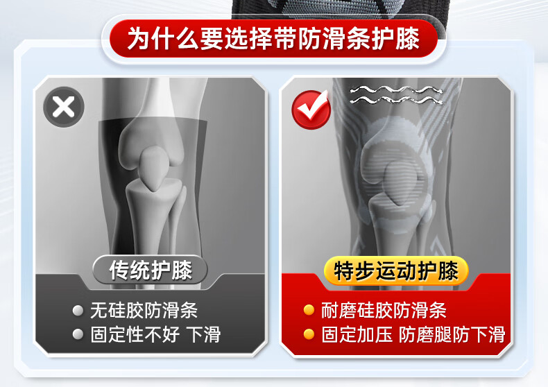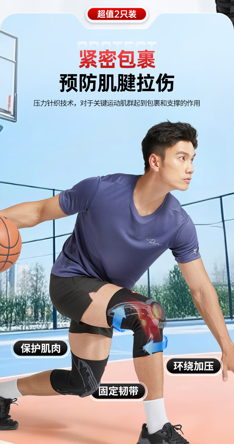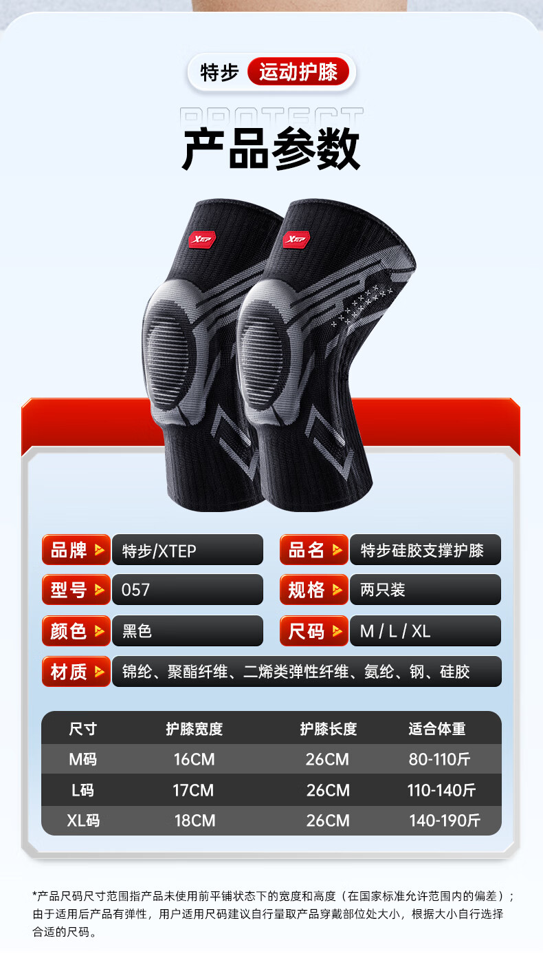 特步(XTEP)护膝保暖运动跑步专用半月板装备篮球膝盖护具男羽毛球登山髌骨带
