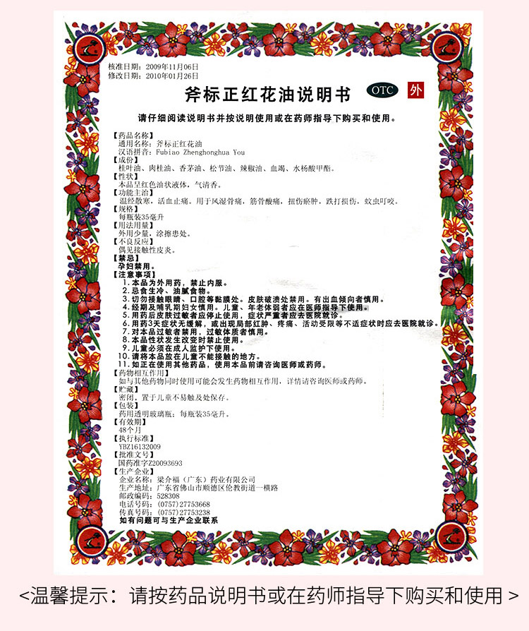 梁介福 斧标正红花油 35ml温经散寒 活血止痛 风湿骨痛 筋骨酸痛 跌打损伤 蚊虫叮咬