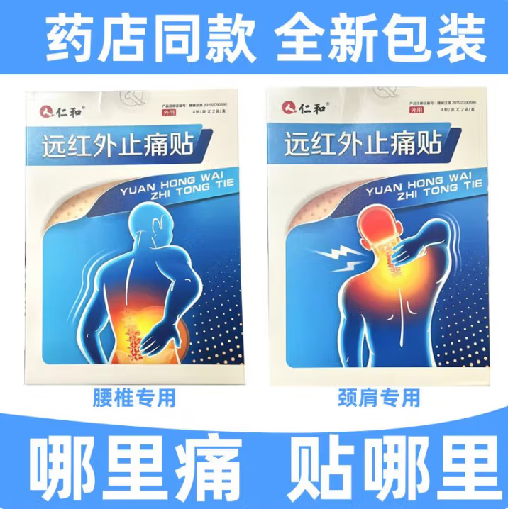 仁和痛贴灵远红外止痛贴膝盖疼痛腰间盘突出贴膏关节膏 1盒装8贴