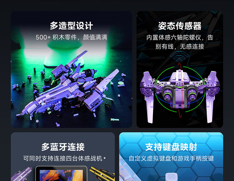 ONEBOT拼装积木男孩玩具14+体感积木战机多造型智能拼装模型生日礼物 飞廉+雷霆