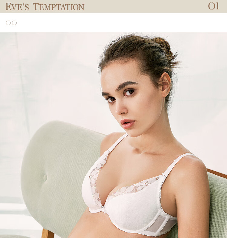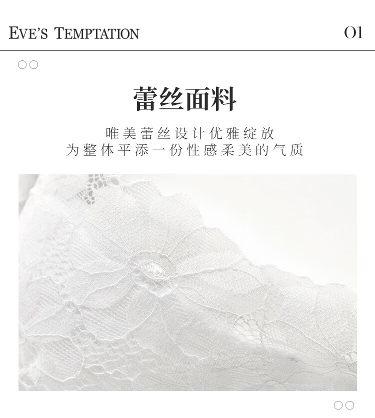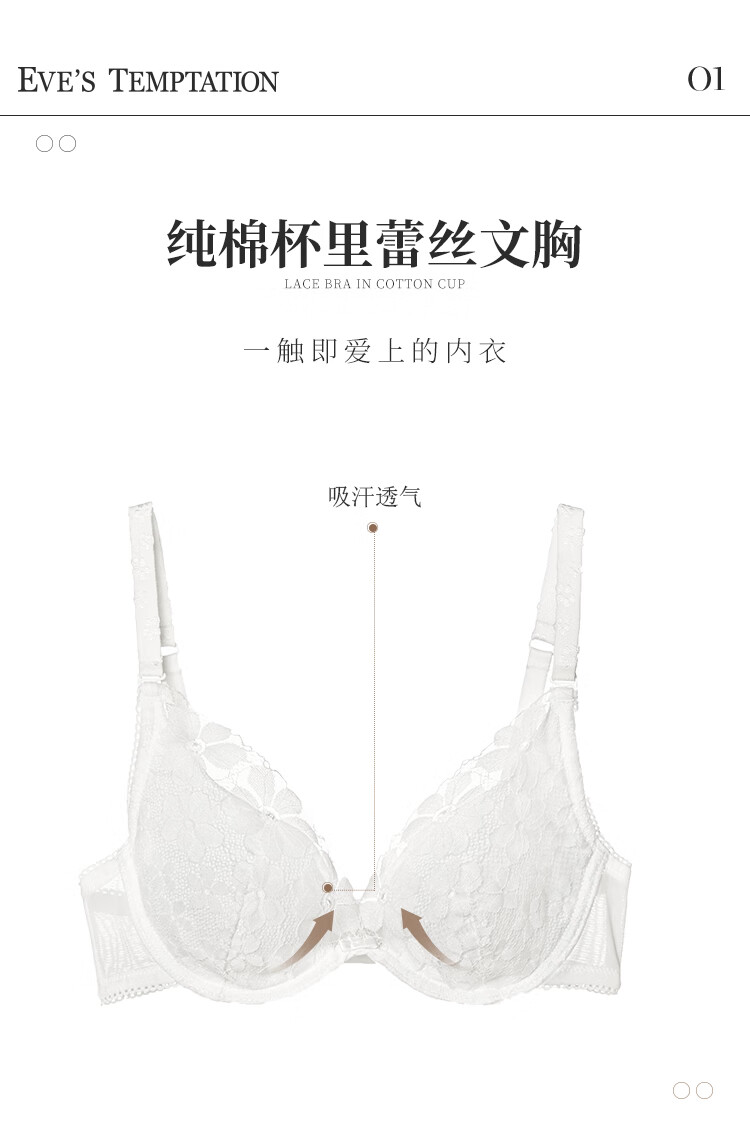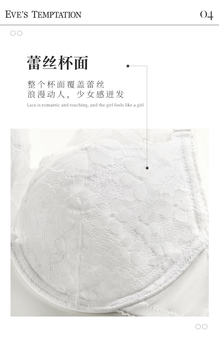 夏娃的诱惑绽放组性感蕾丝聚拢文胸舒适透气三角裤女士内衣套装女薄款胸罩 白色 85C 配三角裤XL码