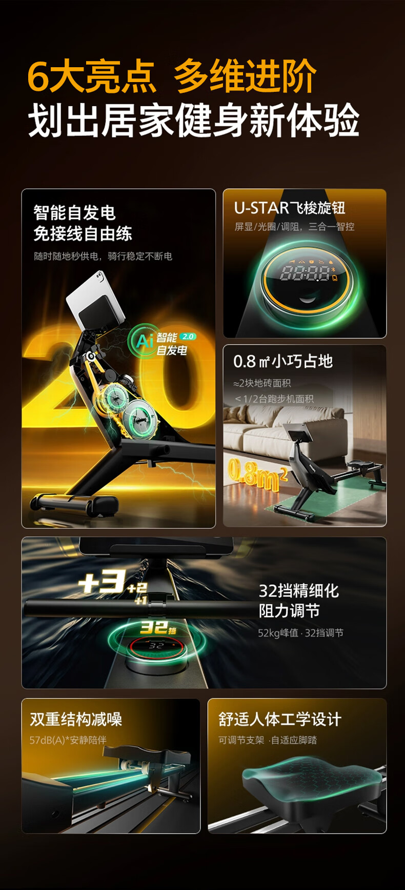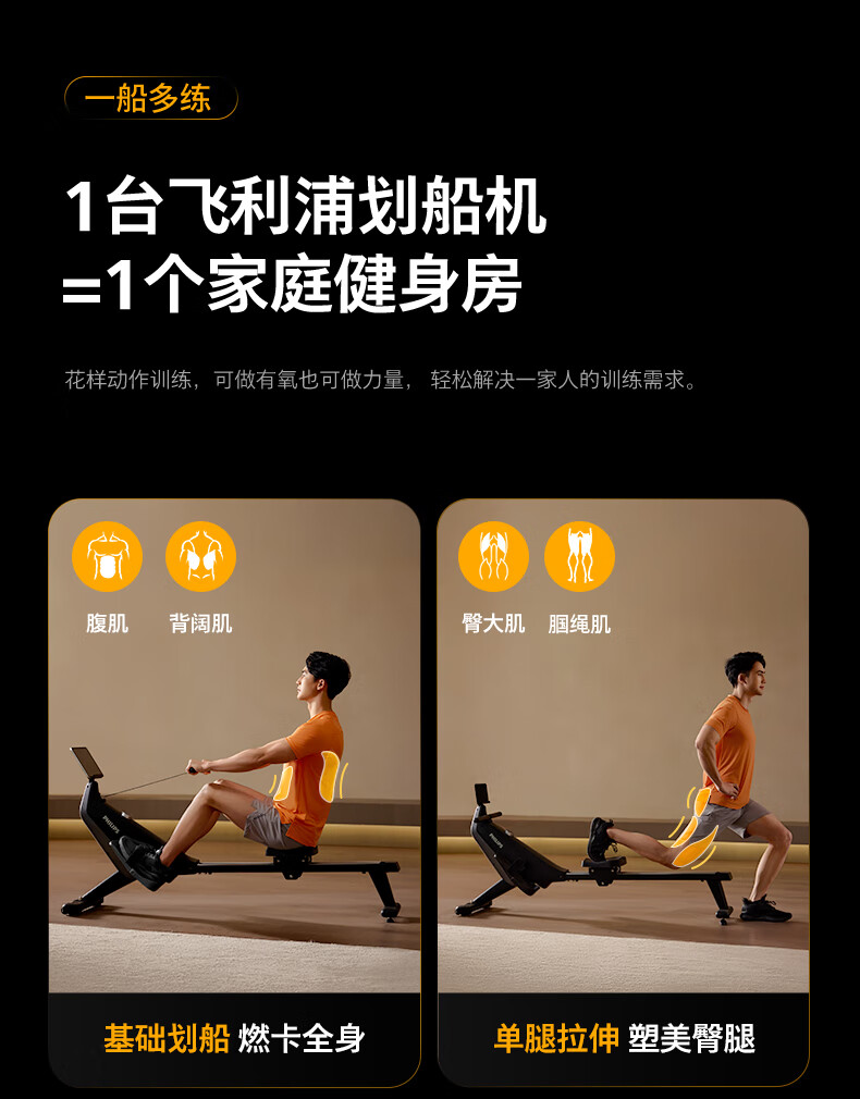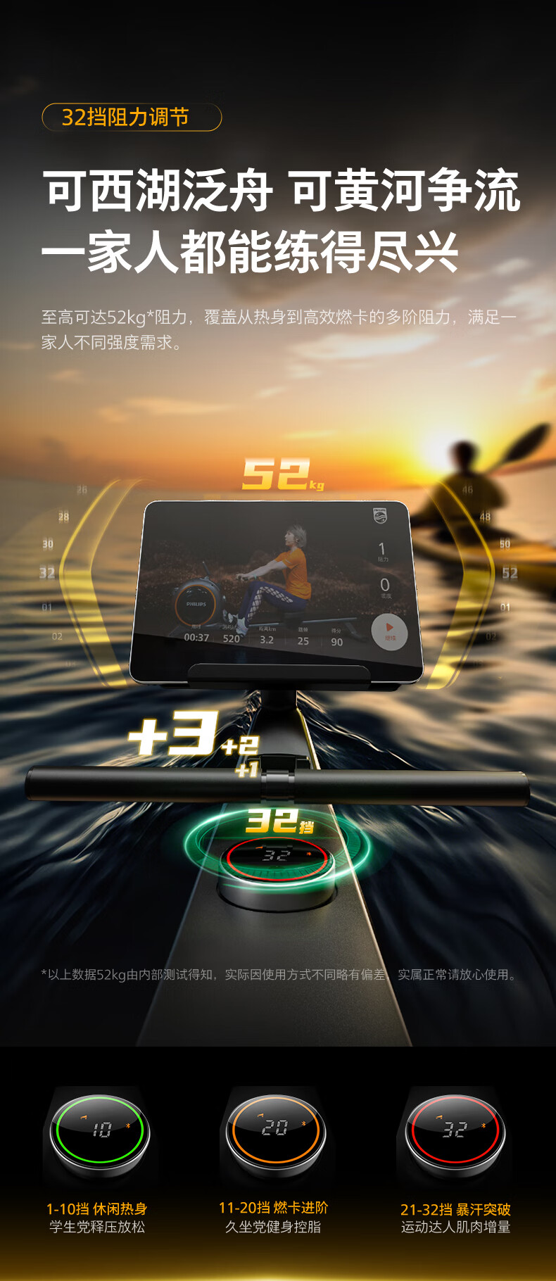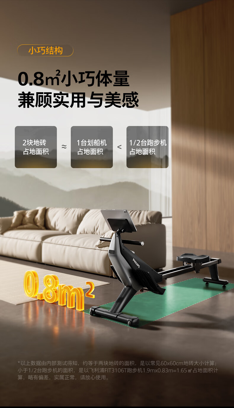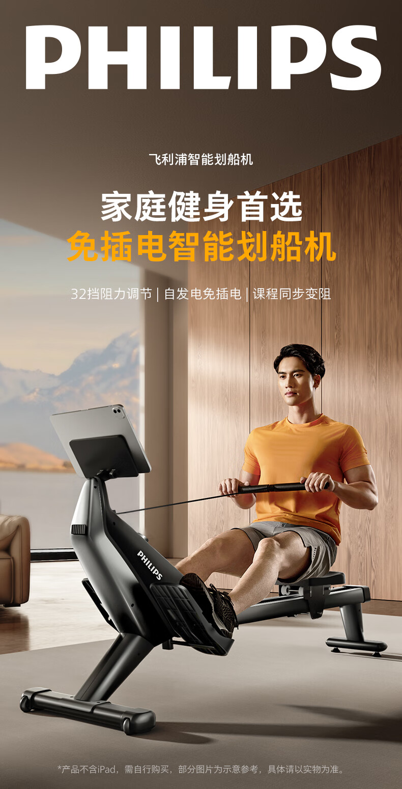 飞利浦划船机家用自发电智能磁阻调节健身器材室内有氧无氧运动3102R