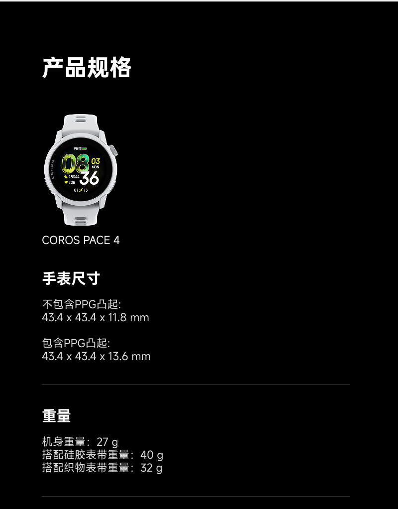 高驰COROS PACE 4双频全星座运动手表音乐马拉松跑步爬楼越野超长续航