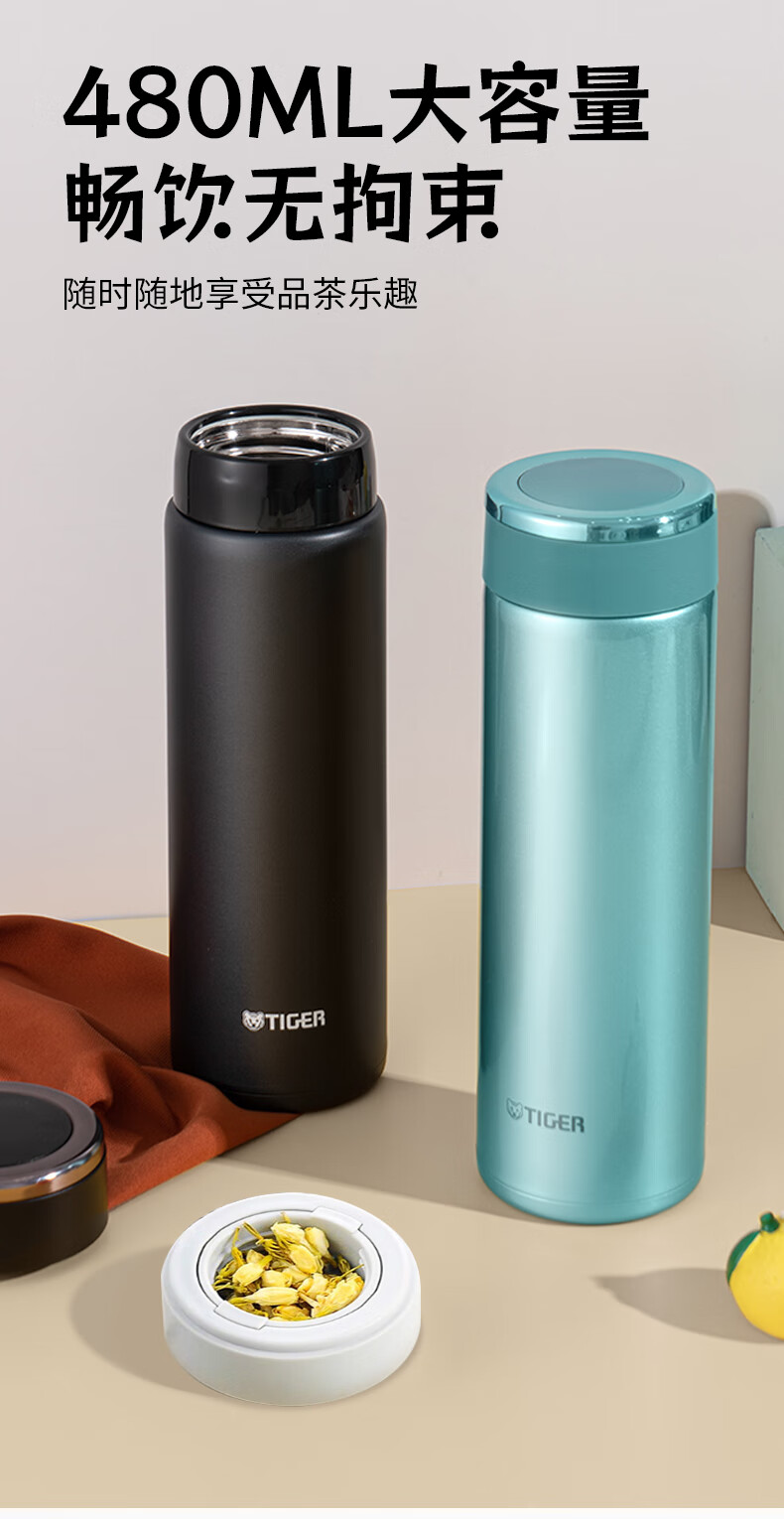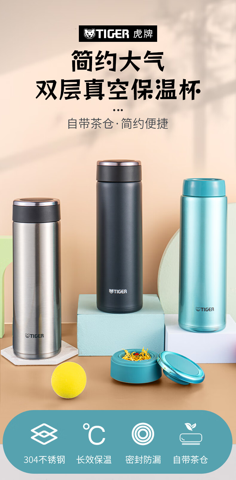 虎牌(TIGER)保温保冷杯不锈钢真空商务水杯七夕礼物MMW-A48C-XC不锈钢色480ml