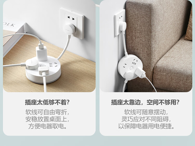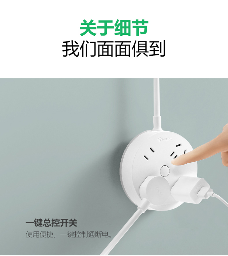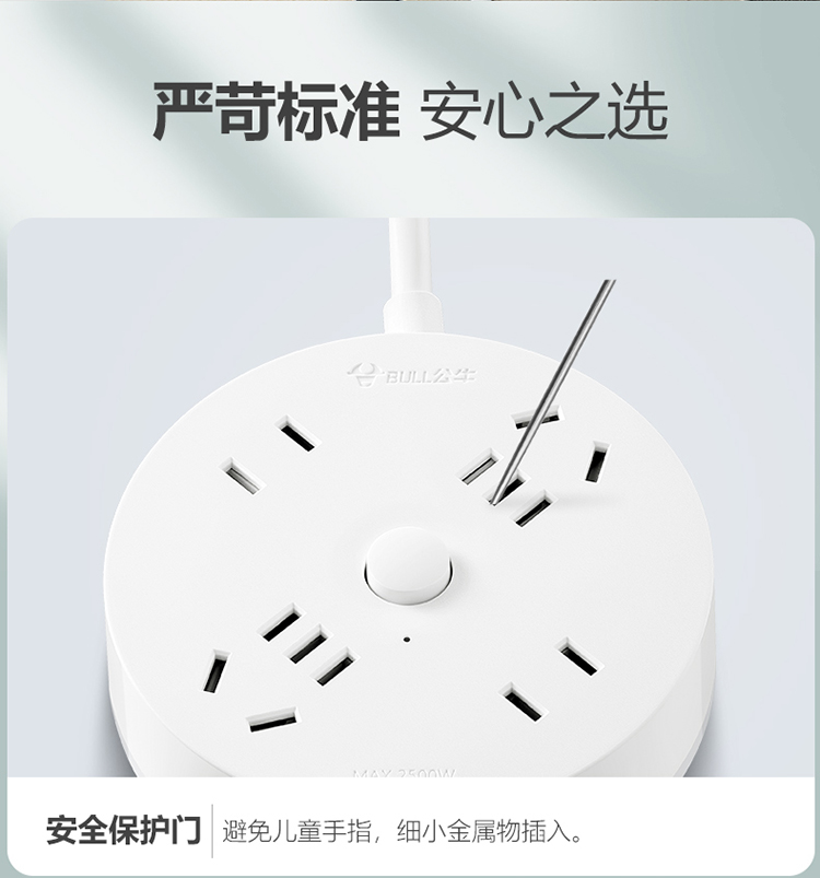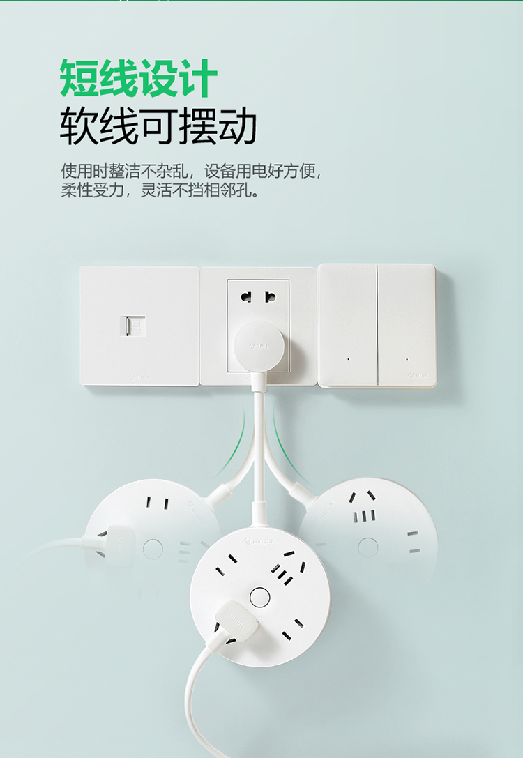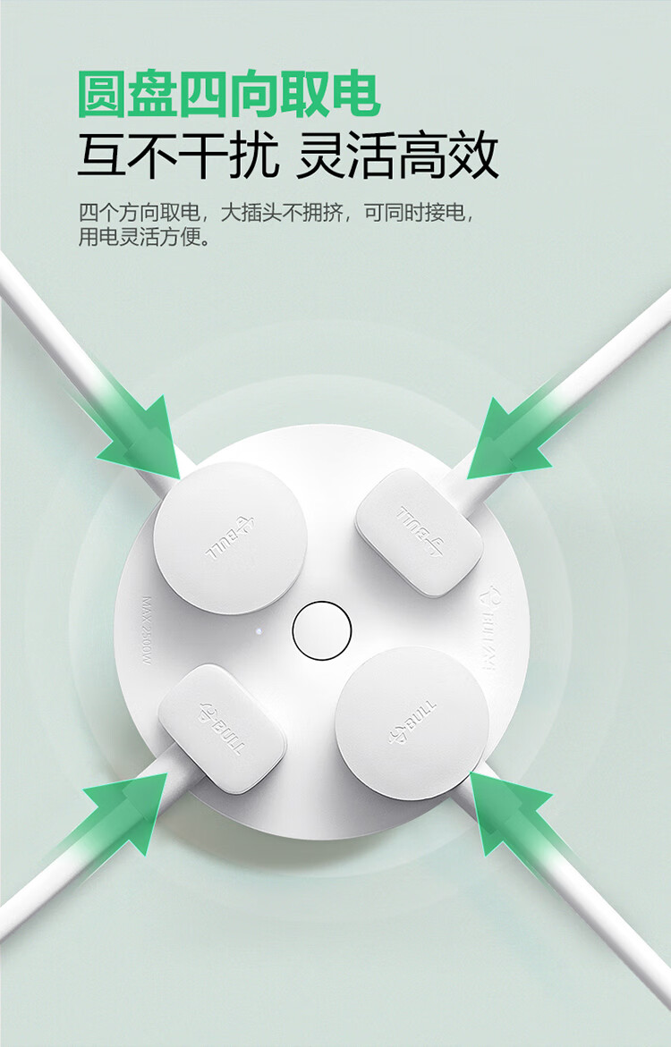 公牛(BULL)插座/插线板/插排/排插/拖线板 转换插头 总控一转四 圆形插座全长0.2米 GN-R2220