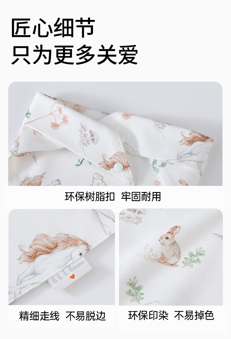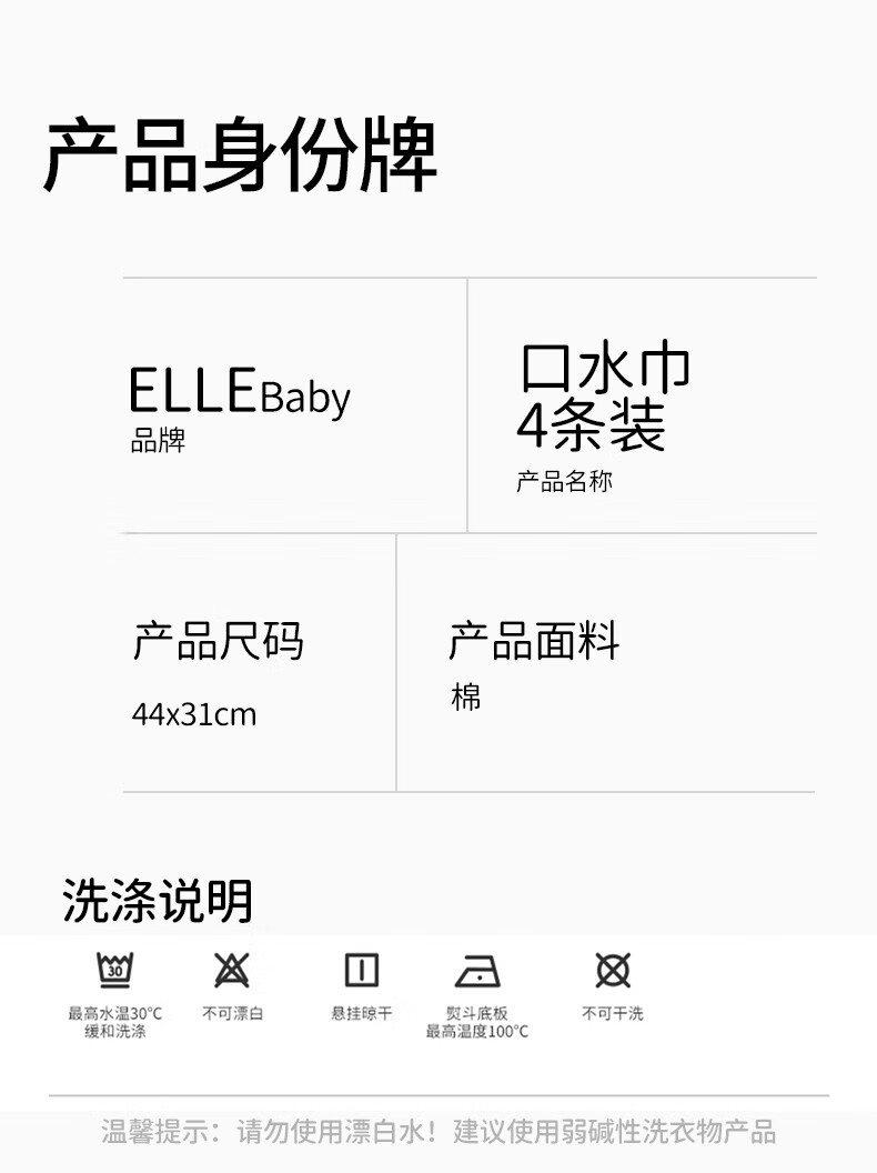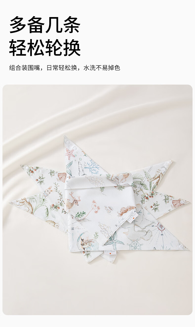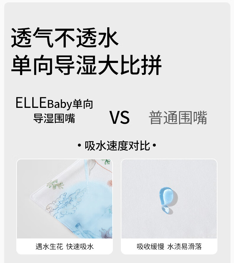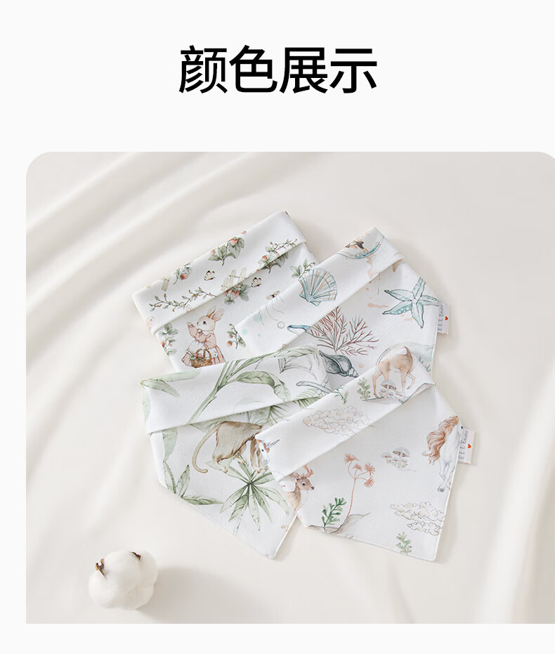 ELLE BABY新生儿口水巾纯棉A类4条装婴儿围兜宝宝围嘴立体隔水抑菌易洗 混合4色 44*31