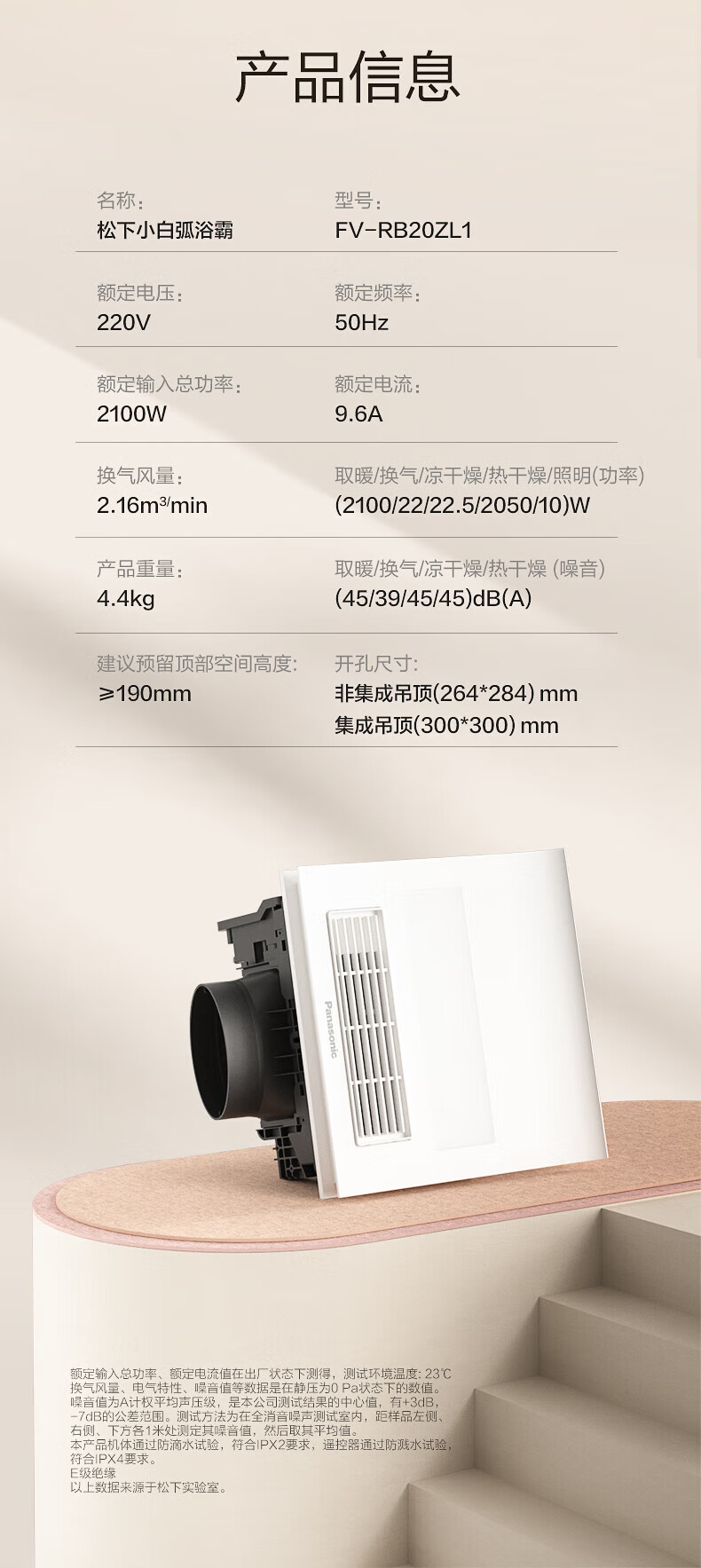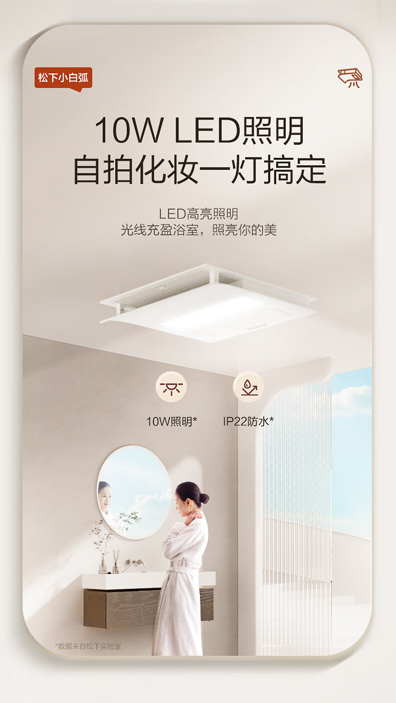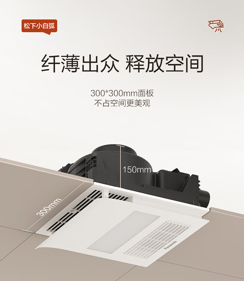 松下(Panasonic)风暖浴霸【国家补贴】吊顶浴室暖风 小白弧照明浴霸 FV-RB20ZL1