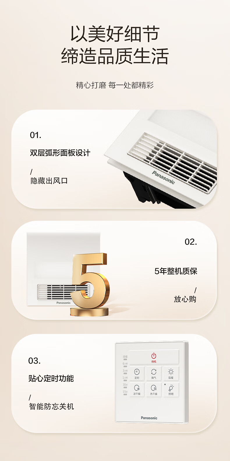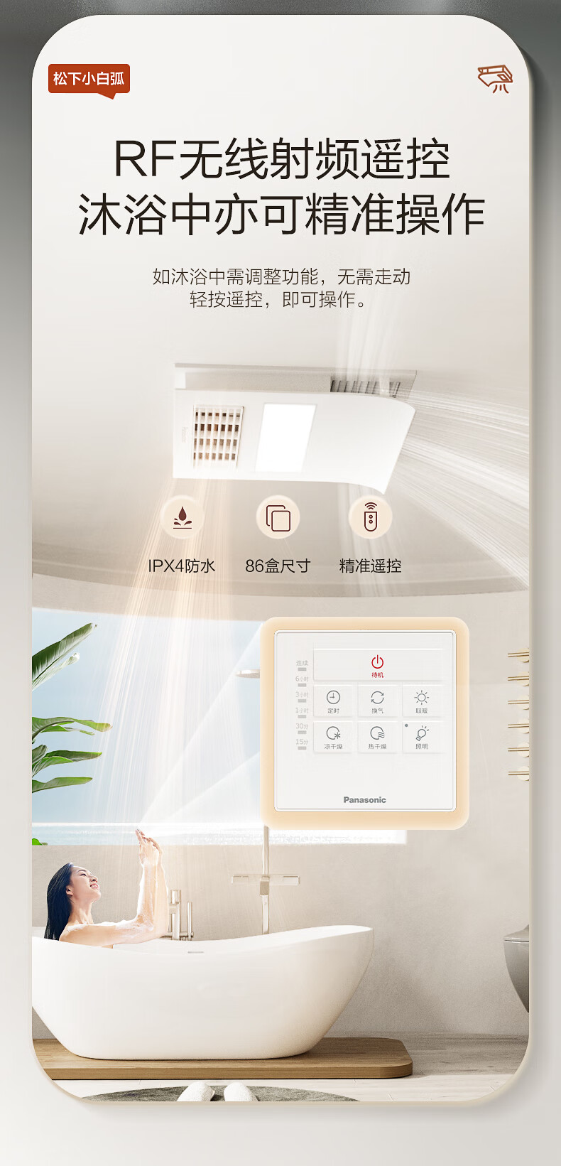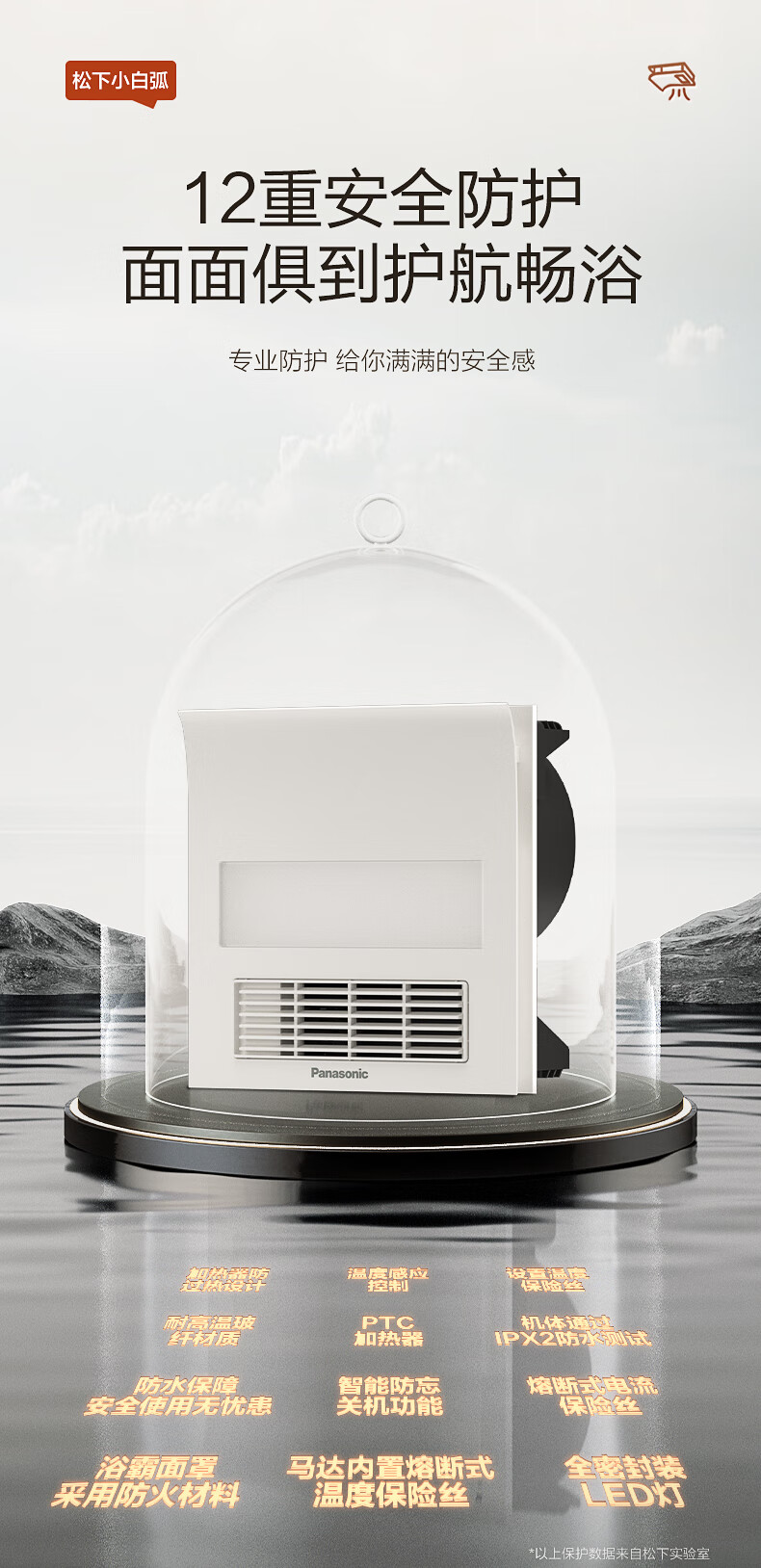 松下(Panasonic)风暖浴霸【国家补贴】吊顶浴室暖风 小白弧照明浴霸 FV-RB20ZL1