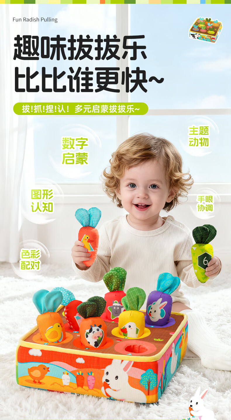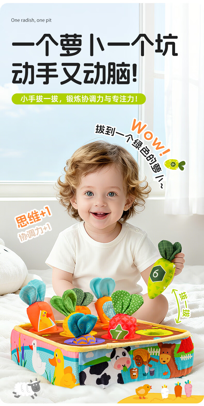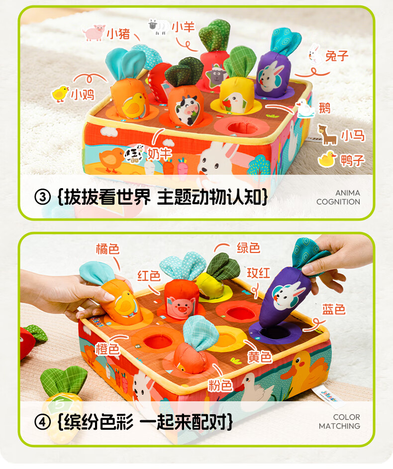 jollybaby早教益智过家家拔萝卜玩具 婴儿可啃咬 0-1岁婴幼儿周岁礼物 农场七彩胡萝卜地拔拔乐