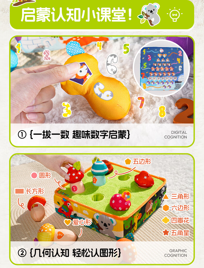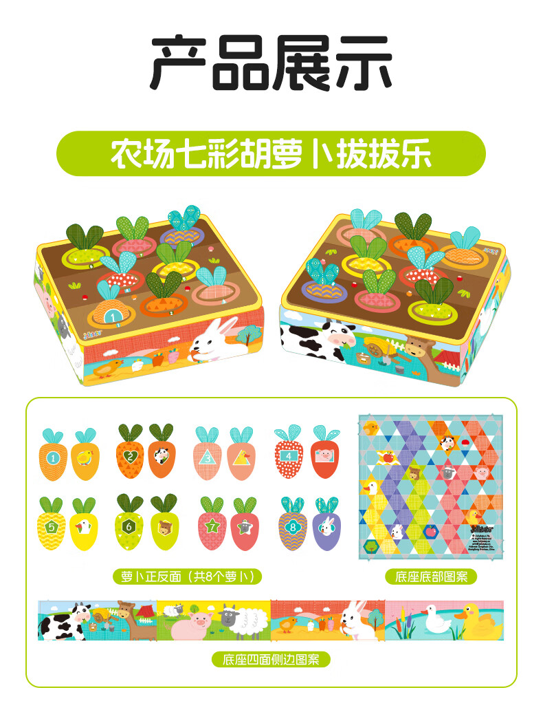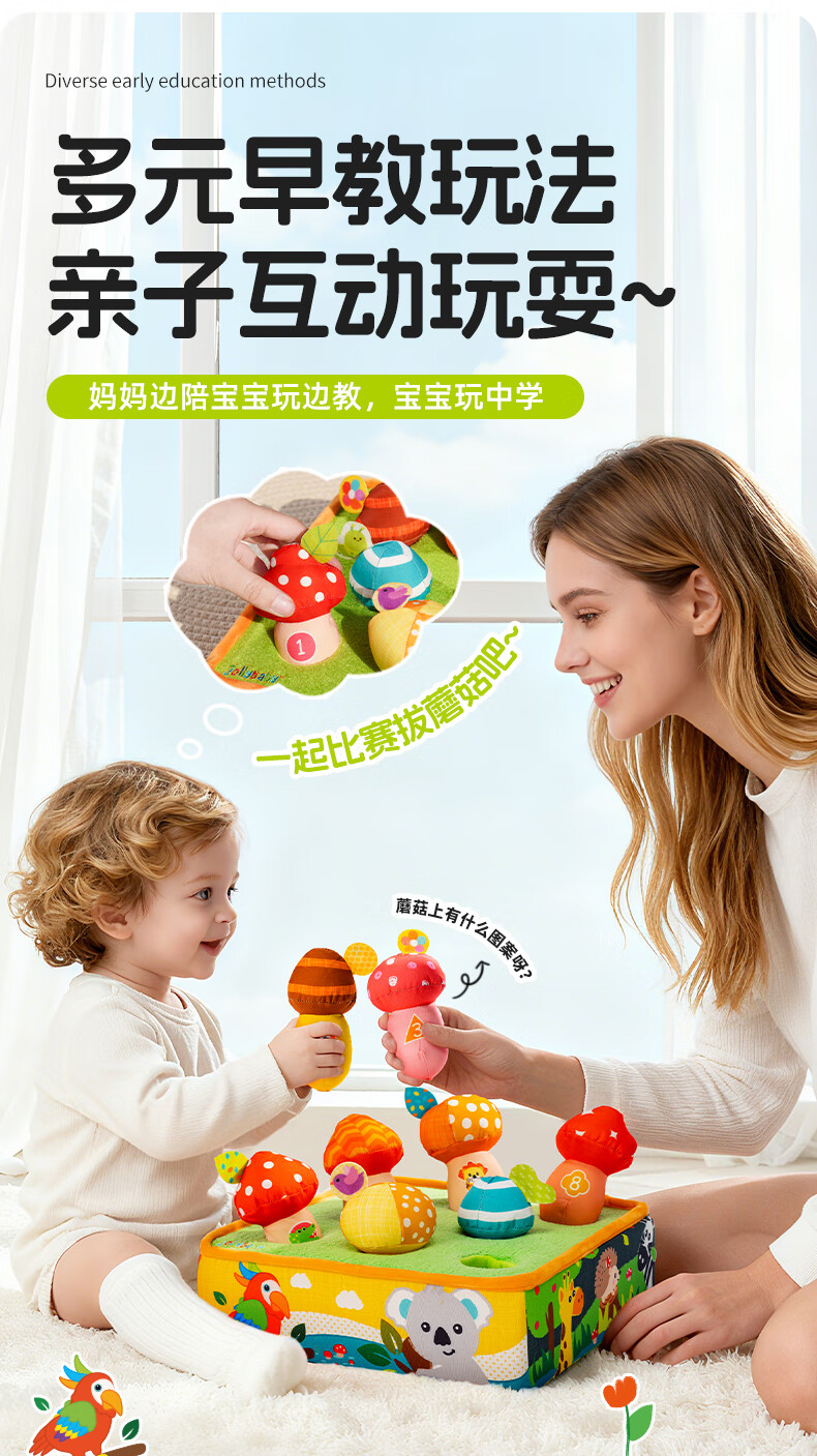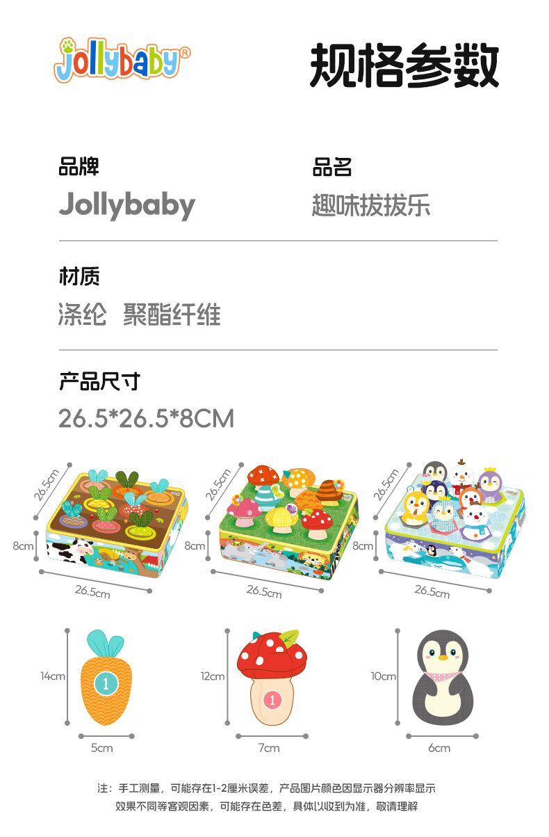 jollybaby早教益智过家家拔萝卜玩具 婴儿可啃咬 0-1岁婴幼儿周岁礼物 农场七彩胡萝卜地拔拔乐