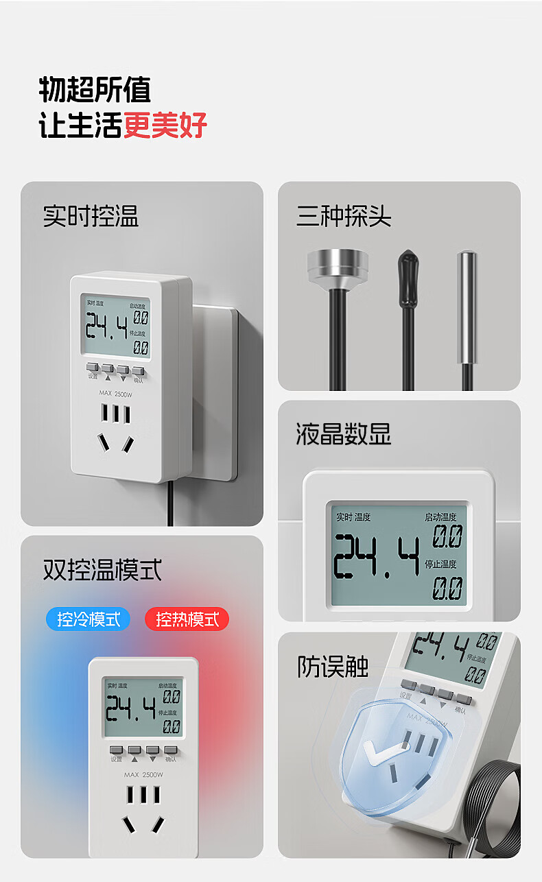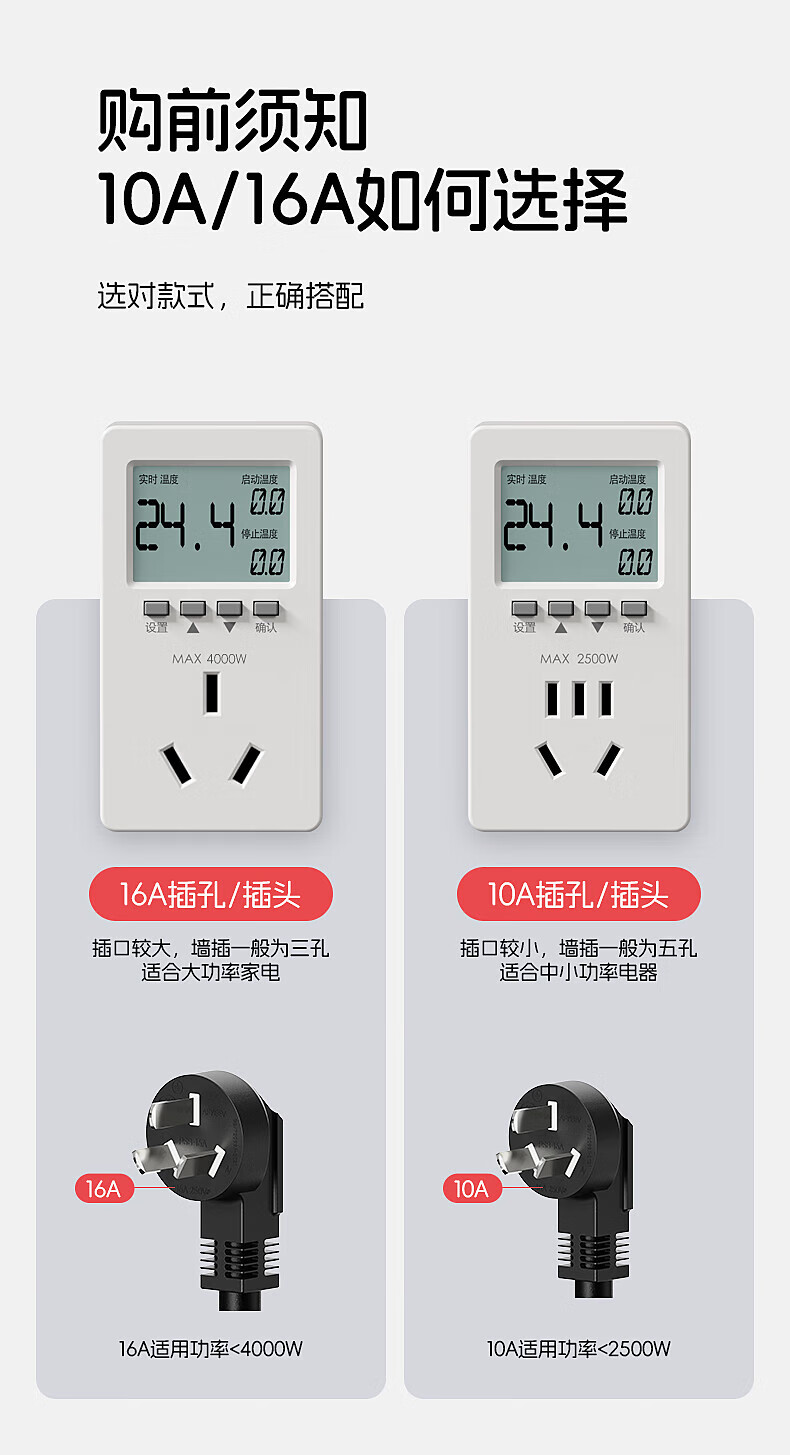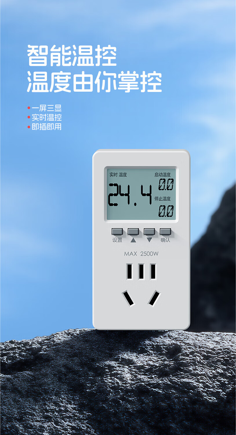 国际电工数显智能温控插座控温开关暖气锅炉温度控制器鱼缸宠物加热温控器 背光-三显【10A五孔 水温探头】