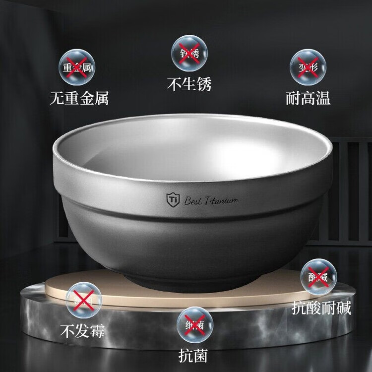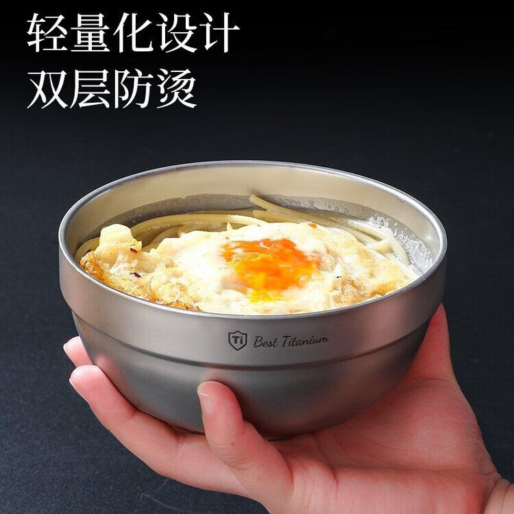 简漾钛净化食品级双层饭碗食堂汤碗家用高档儿童防烫户外露营隔热餐具 小号送钛净化筷子1双