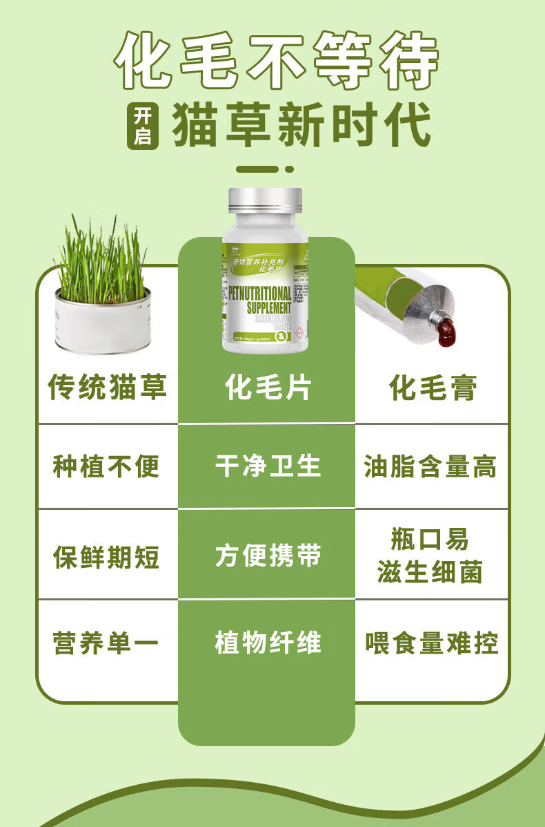 宠贝勒猫草片排毛化毛球片温和排毛宠物营养补充剂猫草片 一瓶装