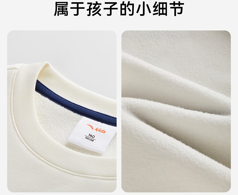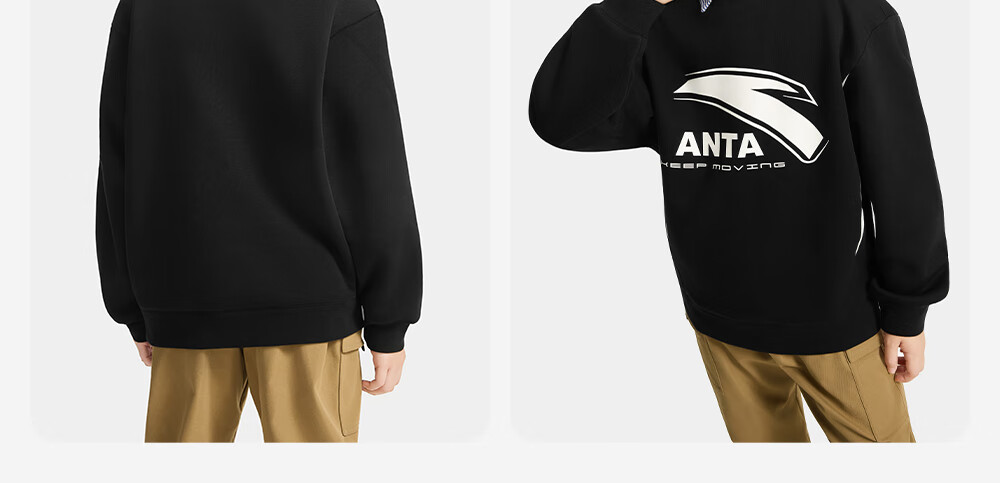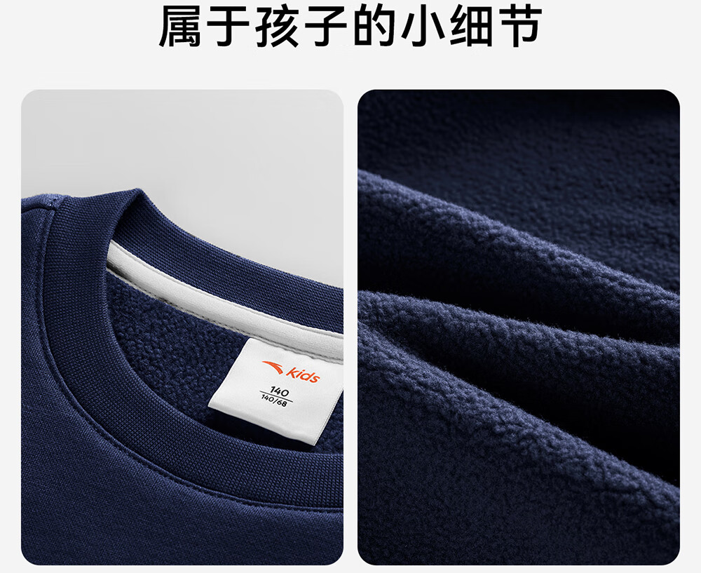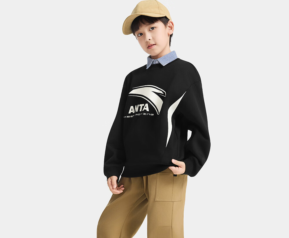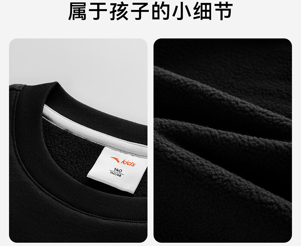 安踏儿童卫衣男大童装2025冬季新品加绒简约百搭长袖套头衫 【店长推荐】基础黑-5 150 cm