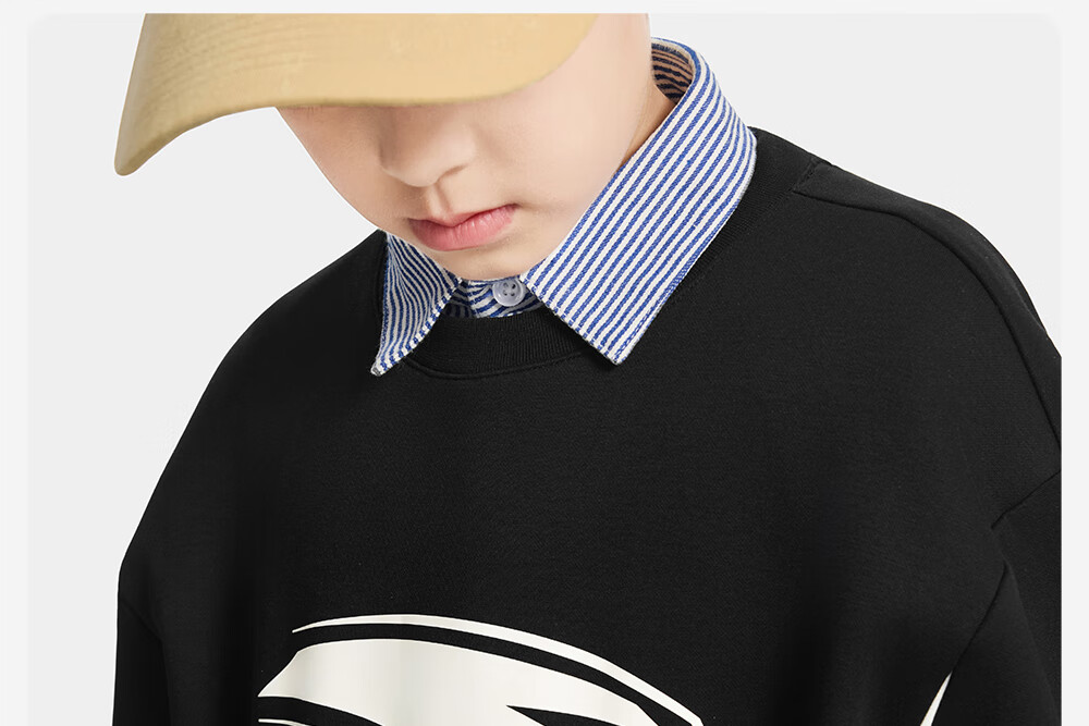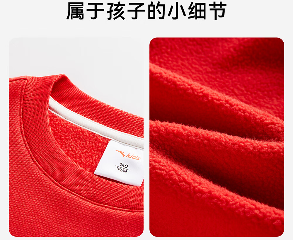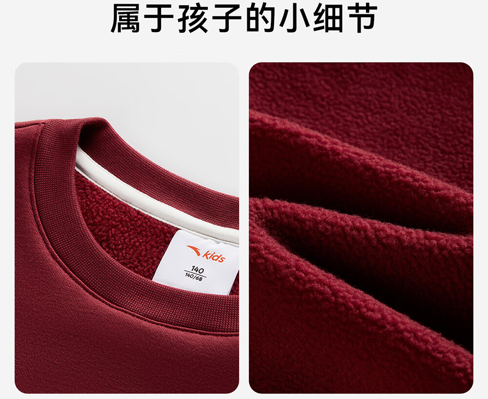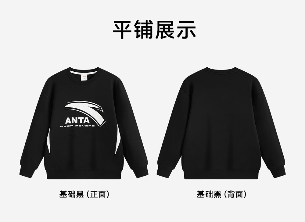 安踏儿童卫衣男大童装2025冬季新品加绒简约百搭长袖套头衫 【店长推荐】基础黑-5 150 cm
