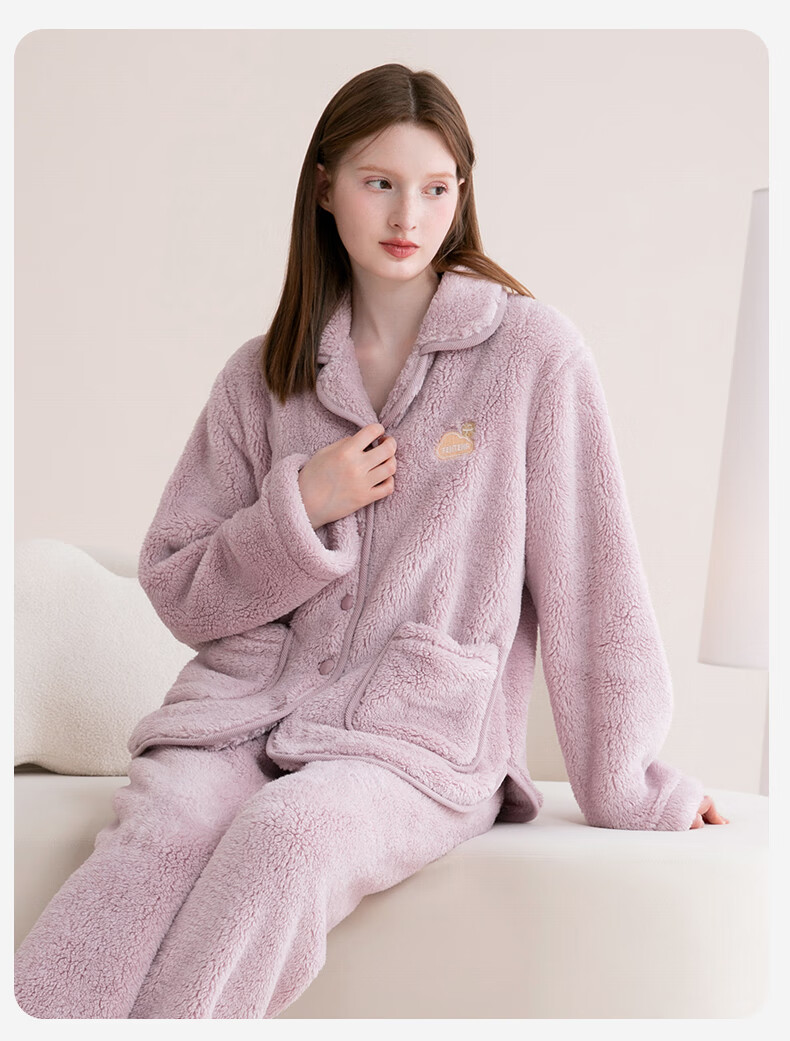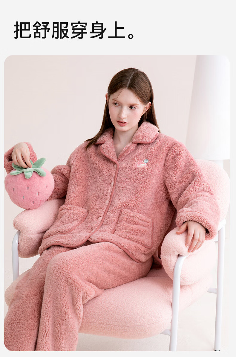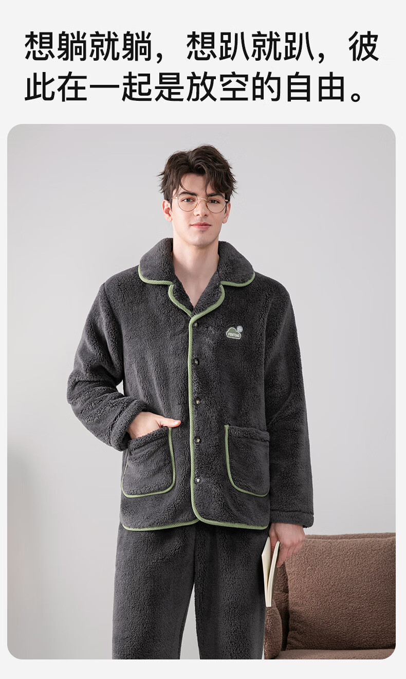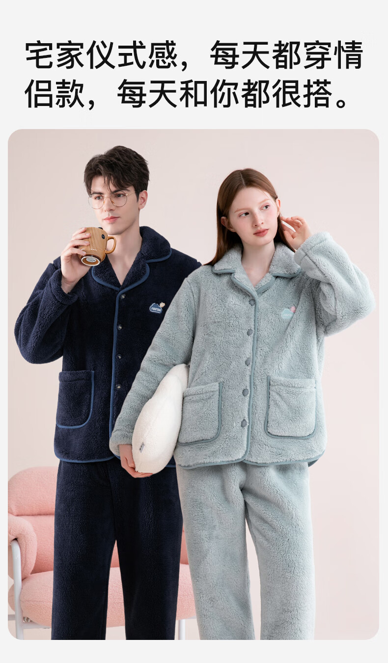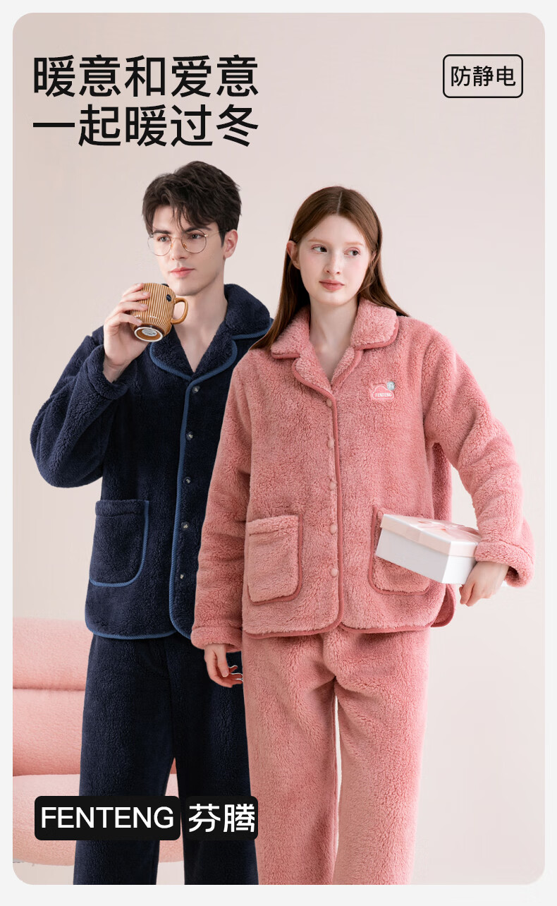 芬腾睡衣女双面暖绒防静电2025年新款保暖翻领开衫宽松情侣家居服