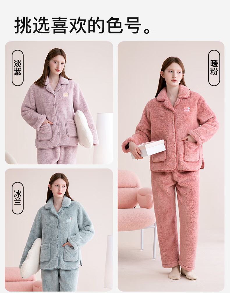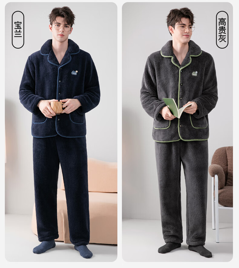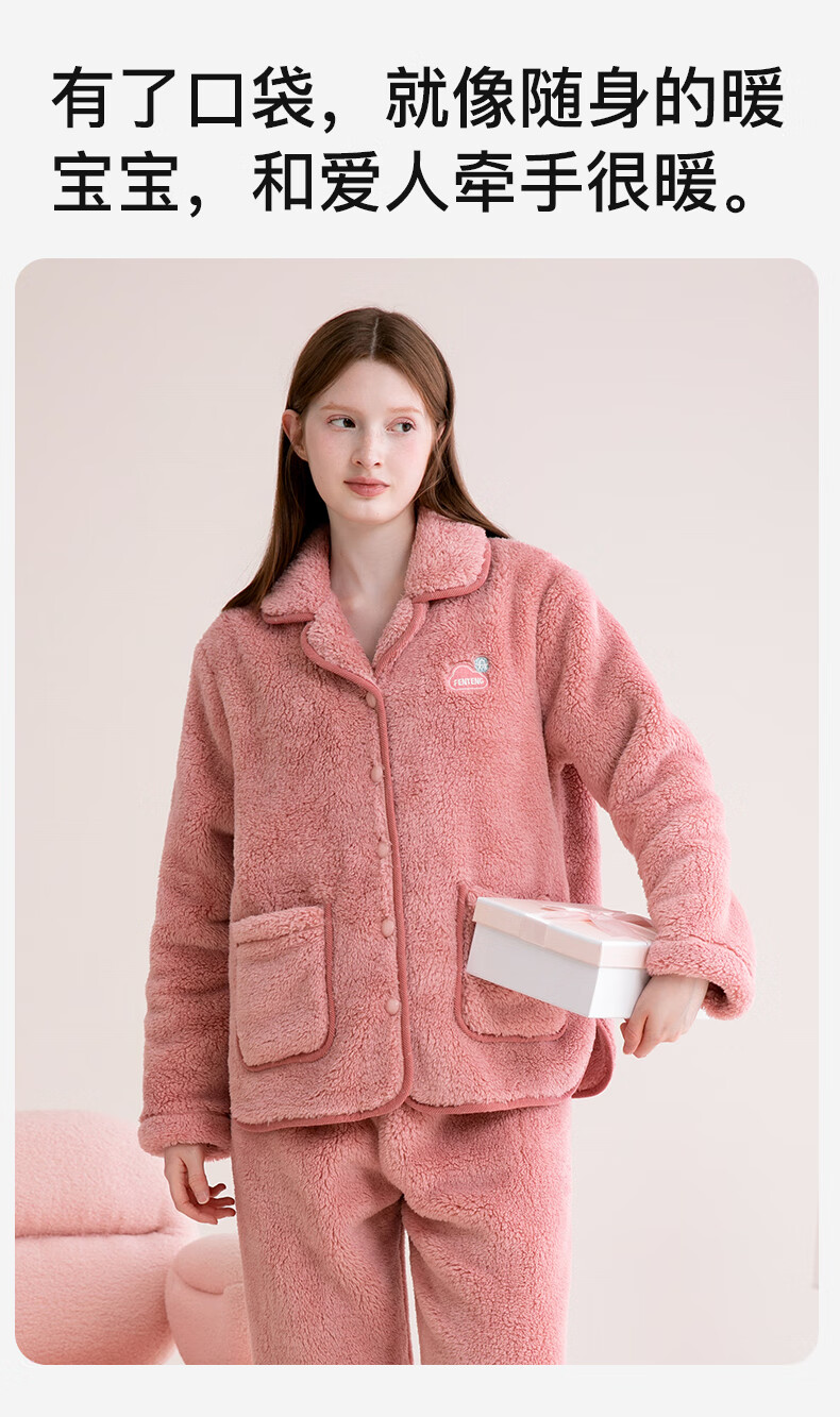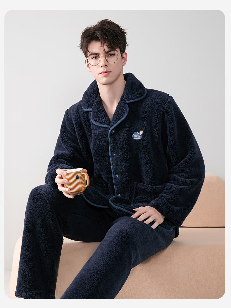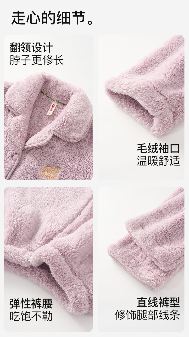 芬腾睡衣女双面暖绒防静电2025年新款保暖翻领开衫宽松情侣家居服