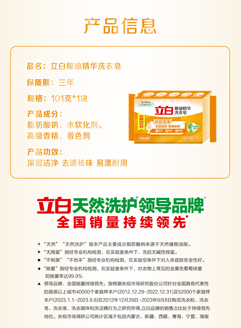 立白椰油精华洗衣皂101g组合装透明皂深层洁净去渍去污肥皂家庭装 【10件套装】液皂粉组合套装