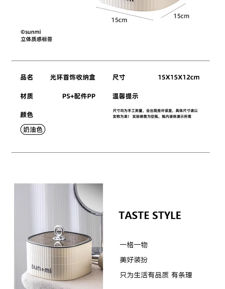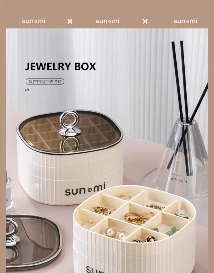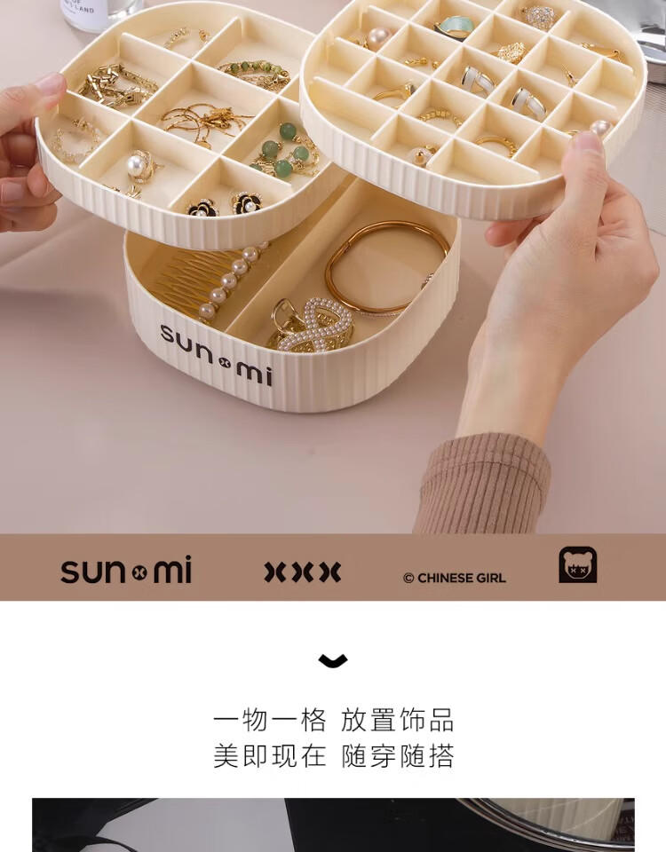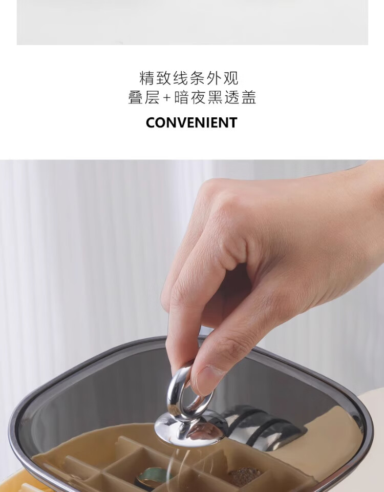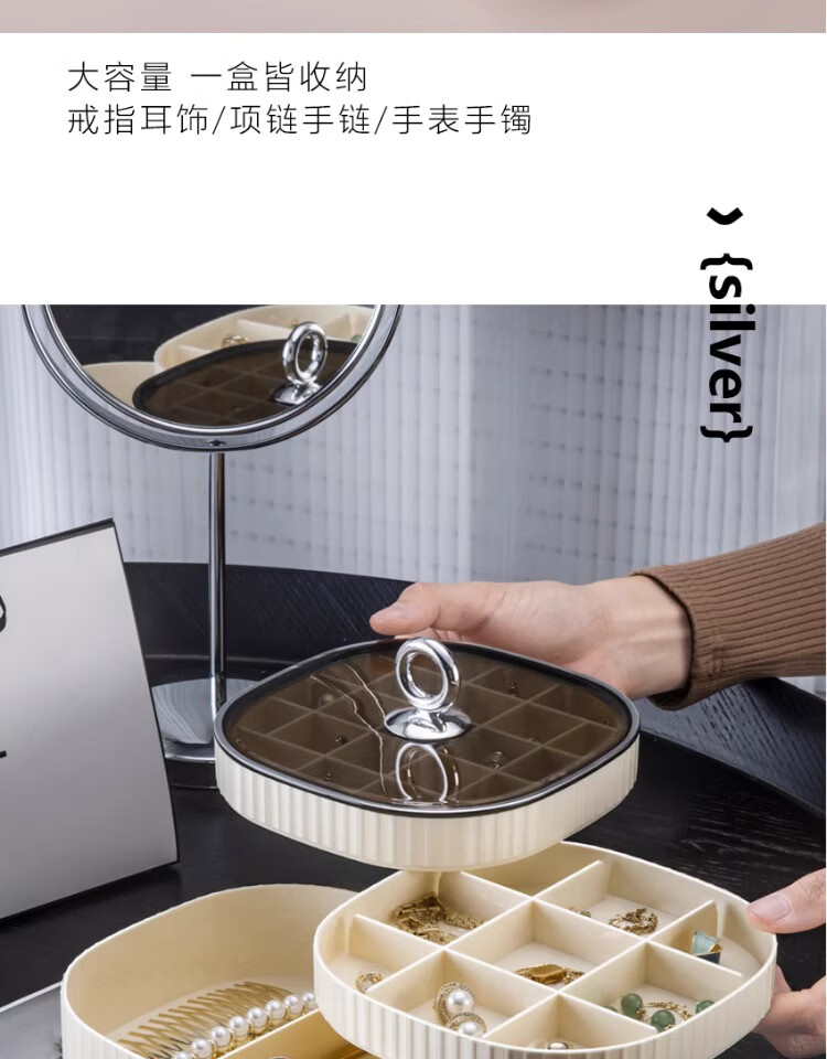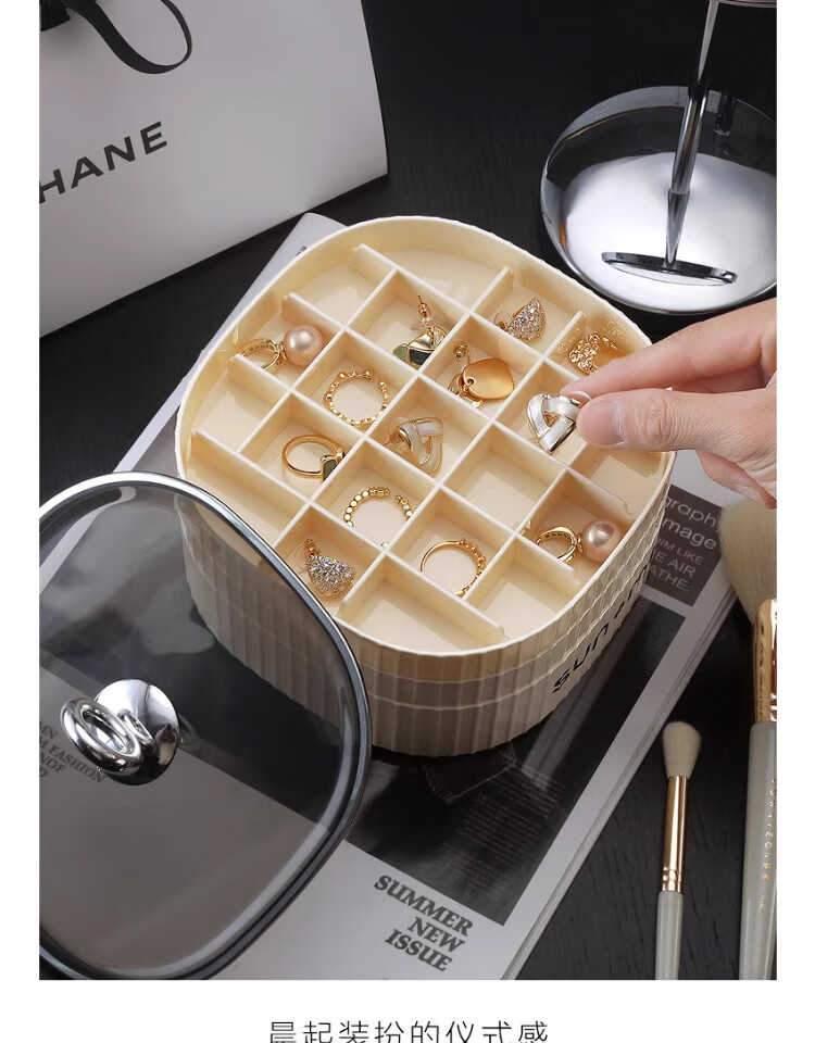 木格格高档首饰收纳盒项链耳环耳钉耳饰手镯戒指精致饰品黄金珠宝大容量 1个装【三层收纳,分类分格】