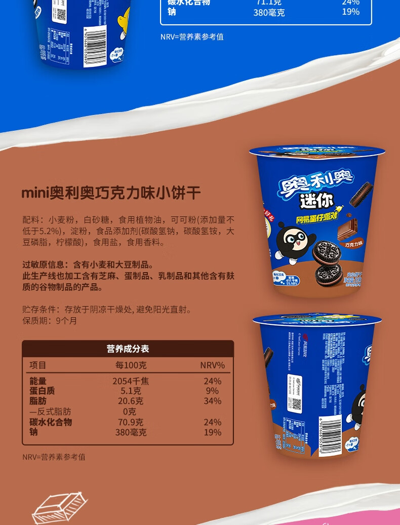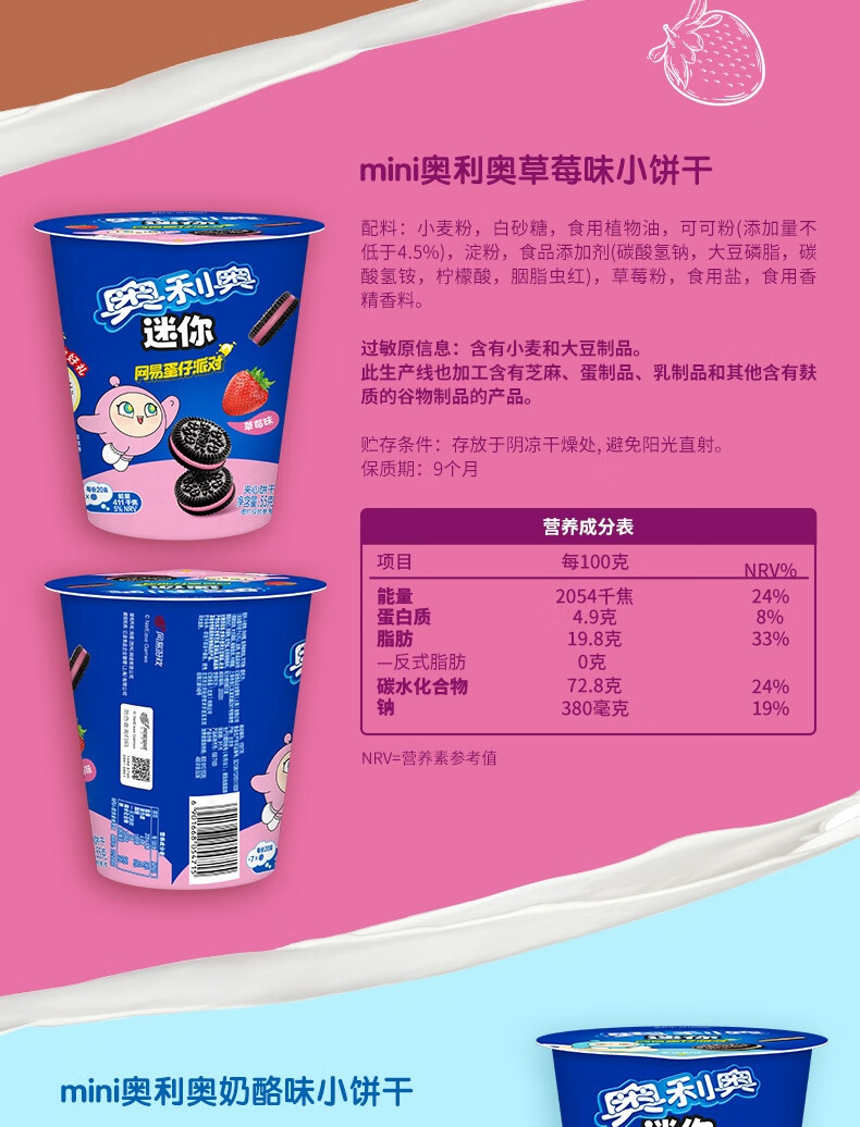 奥利奥(Oreo)mini小饼干双口味夹心饼干55gX3杯 早餐下午茶休闲零食