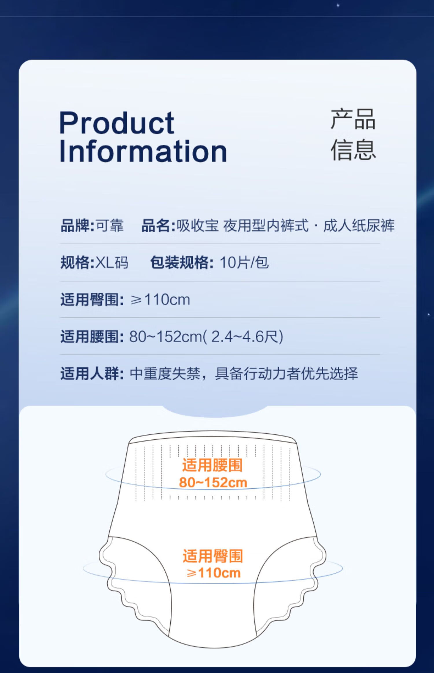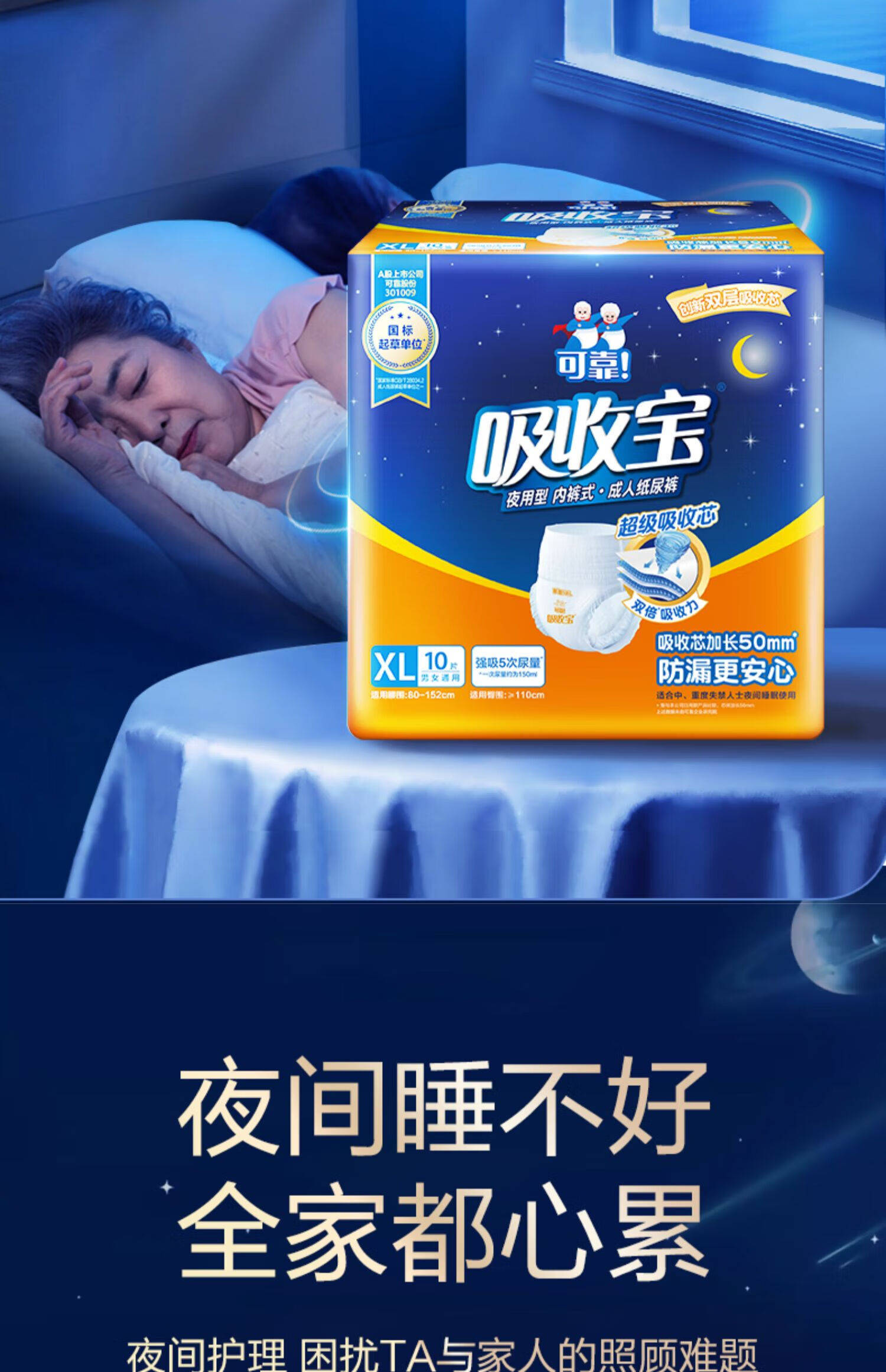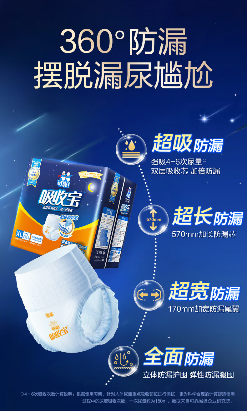 可靠(COCO)吸收宝夜用成人拉拉裤XL10片(臀围80-149cm)老年人内裤型纸尿裤