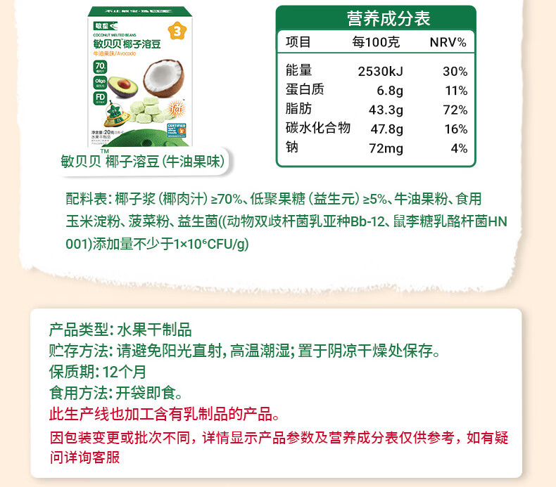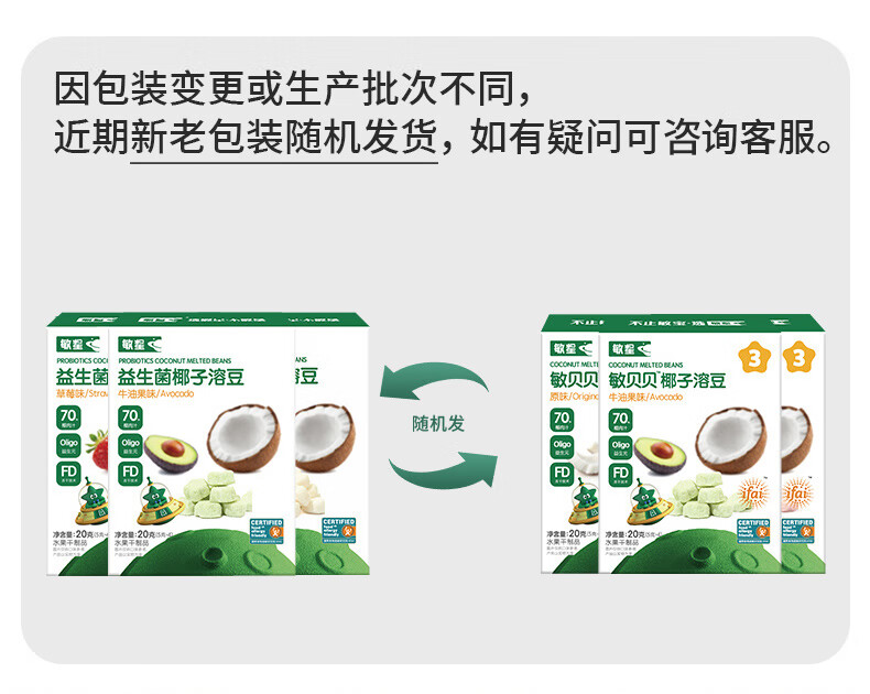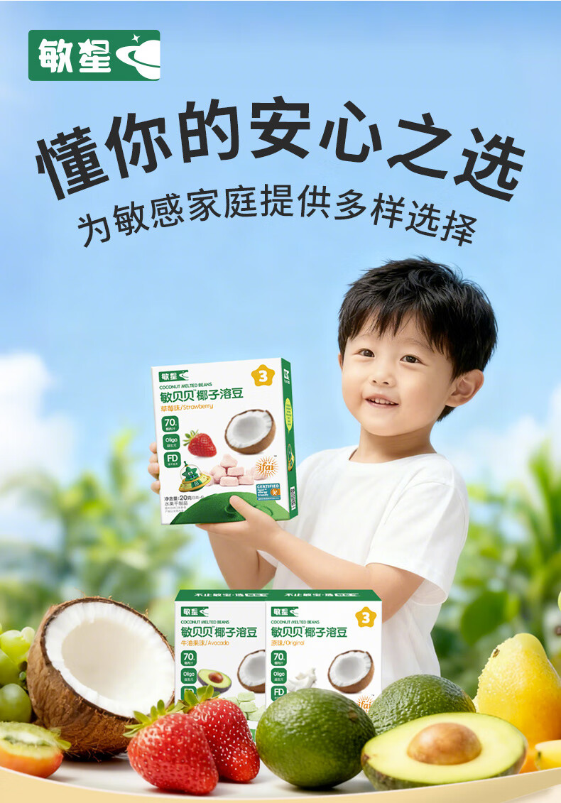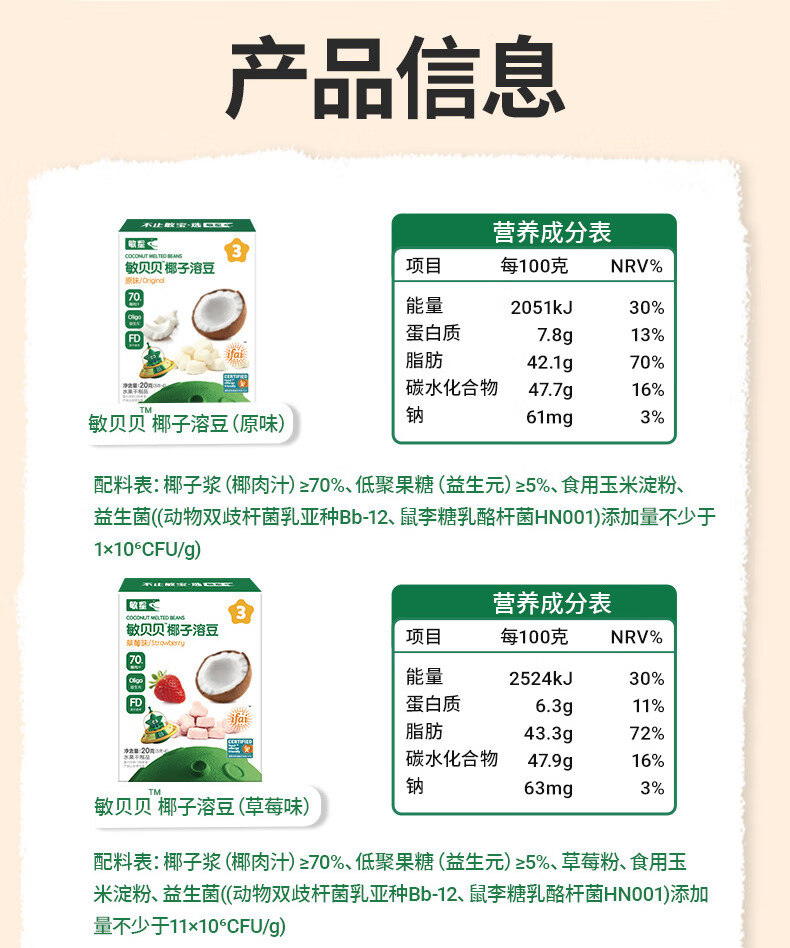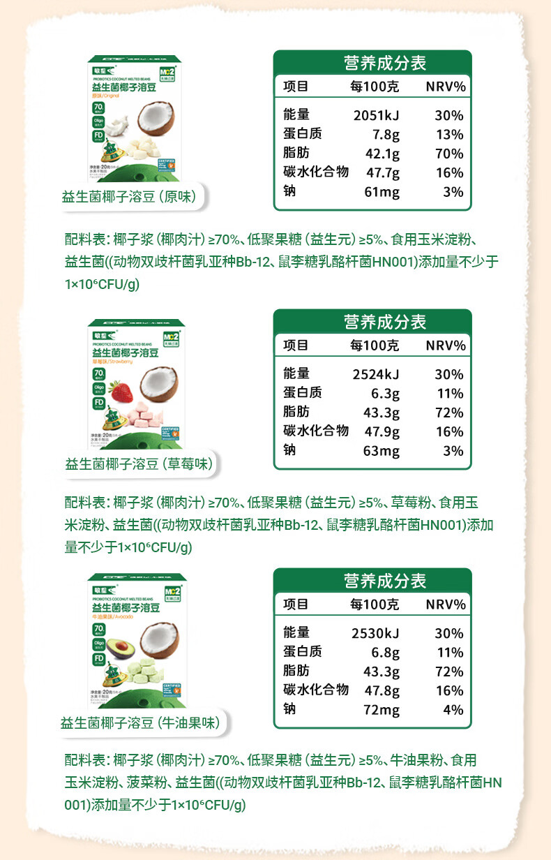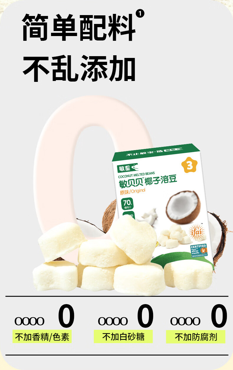 敏星益生菌椰子溶豆无鸡蛋牛奶椰奶溶溶豆小零食送婴儿童宝宝食谱 3盒【口味各一】