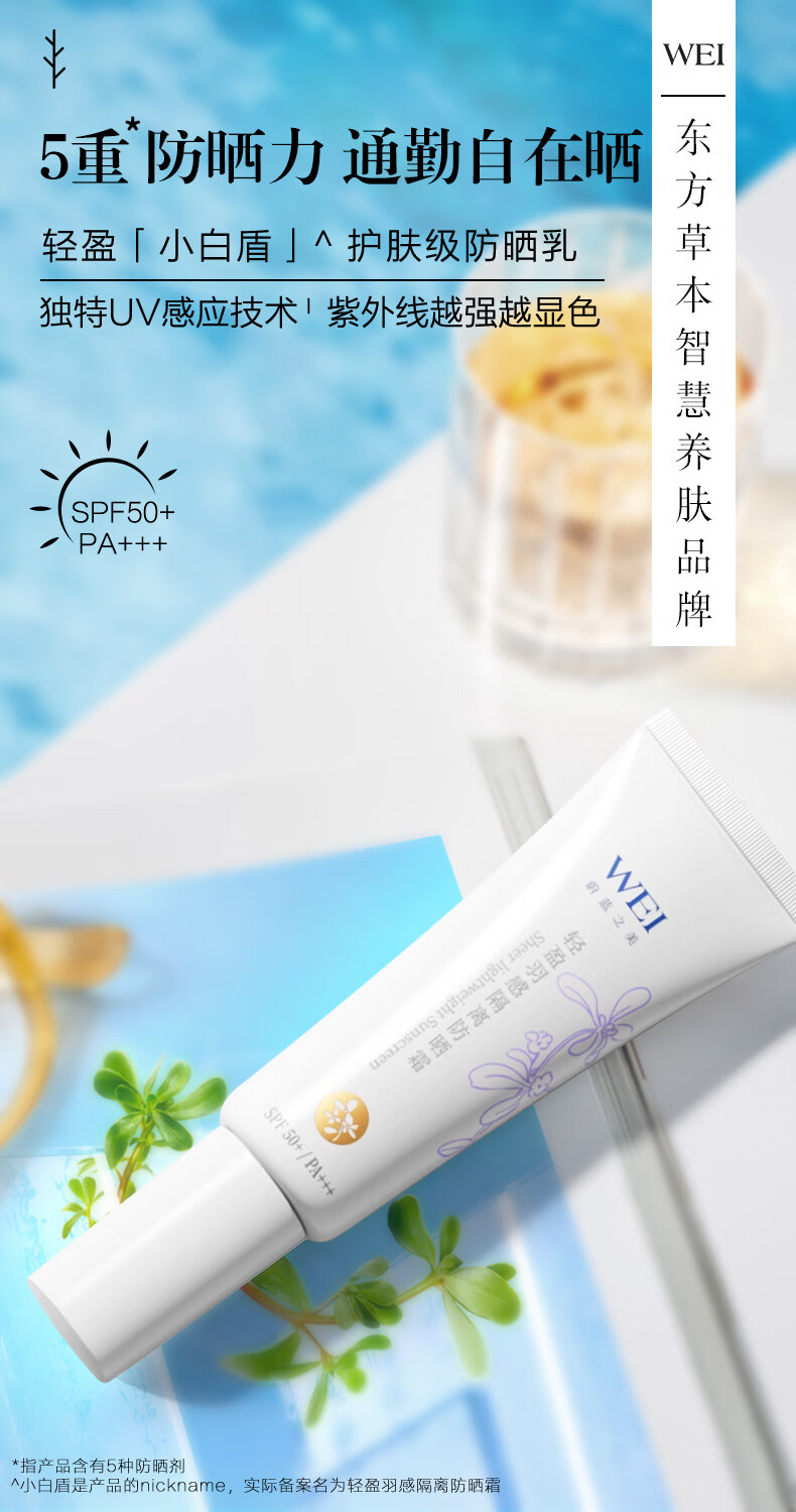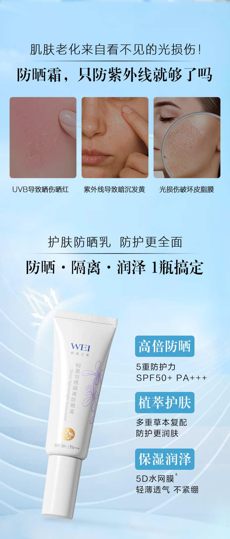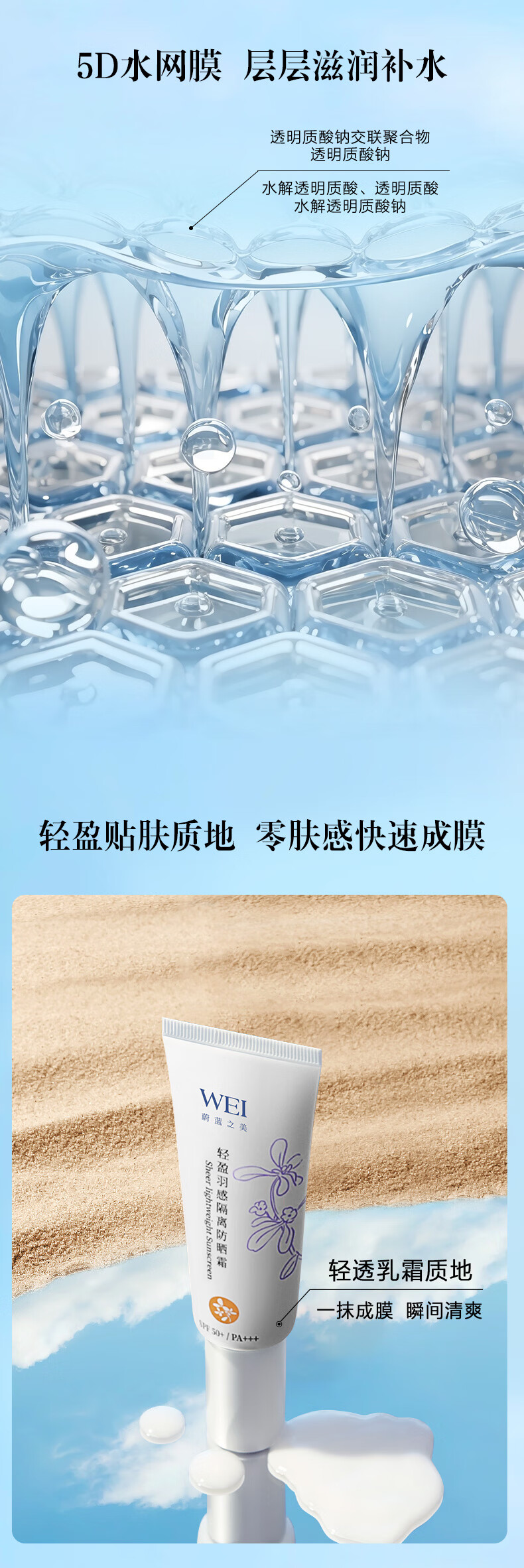 蔚蓝之美WEI轻盈羽感隔离防晒霜 户外面部高倍防晒乳防紫外线SPF50+男女士